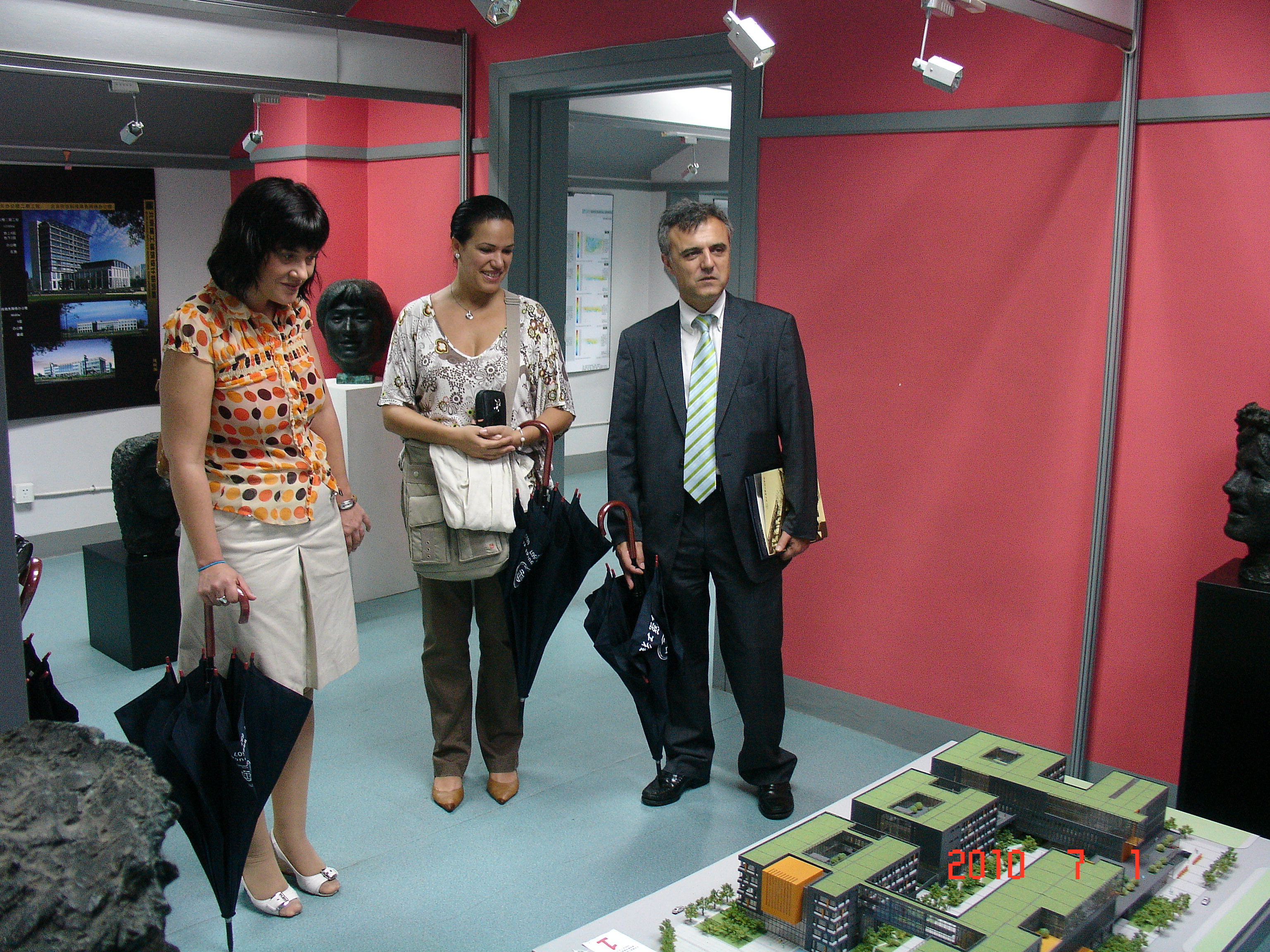 国际商公司教师一行三人在国际合作与交流处徐老师的带领下到建筑公司参观。