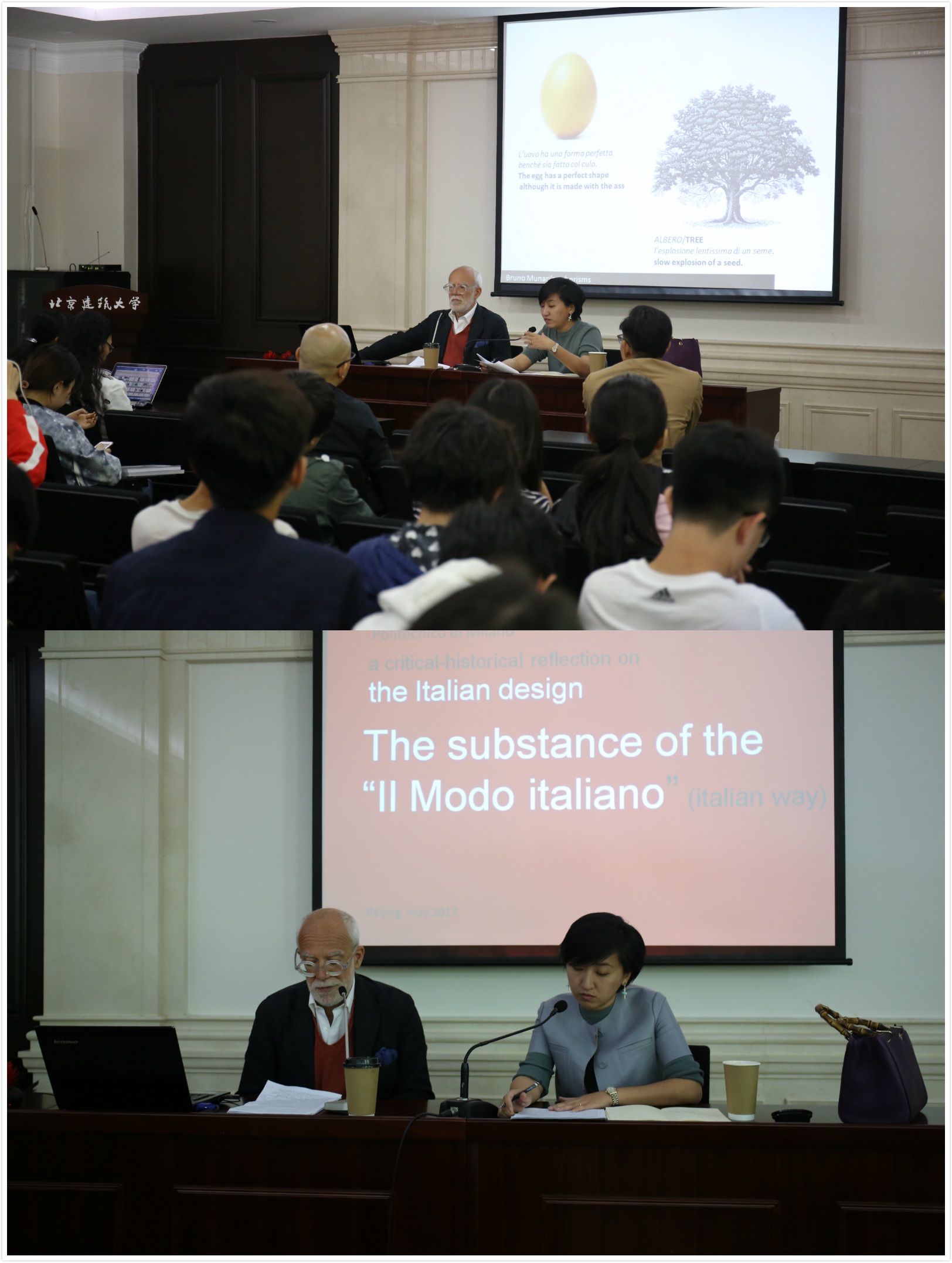 5月5日在西城校区教1楼第八会议室由中国建筑学会和beats365官方网站联合主办,建筑公司设计学系承办了两场精彩的讲座——“意大利风格——意大利设计文化”与“建筑手绘艺术与设计快速表现”。第一场讲座邀请的米兰理工大学设计公司全职教授、室内设计与展示设计博士生导师组成员博佐尼先生为公司师生做了题为“意大利设计文化”学术讲座,特邀清华大学美术公司副教授周艳阳担任意大利语翻译。博佐尼教授为在座师生介绍了意大利设计的发展历程,针对意大利设计界对传统与现代的理解与实践,通过经典设计作品来阐释意大利的建筑设计、工业设计、展示设计的发展创新。博佐尼教授还回答了同学提出的问题。