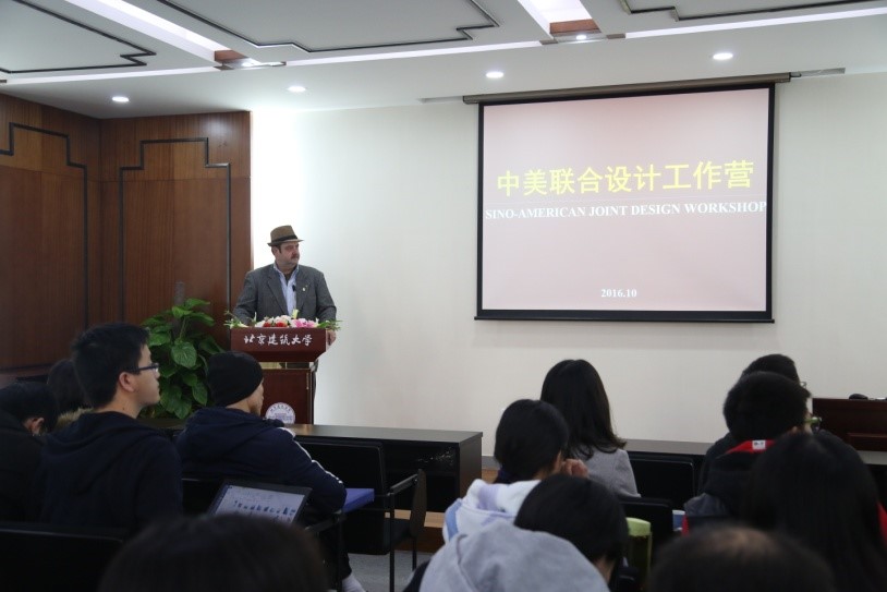 2016年10月18日至-30日,建筑公司邀请美国纽约大学客座教授Jed.Hotchkiss来公司进行学术交流。在历时两周的中美联合设计工作营期间,公司王佐副教授与Jed.Hotchkiss教授合作指导来自建筑学专业、城市规划专业和风景园林专业的12级本科生和部分研究生,赵可昕老师、李珊珊老师和郝石盟老师参加了本次工作营。