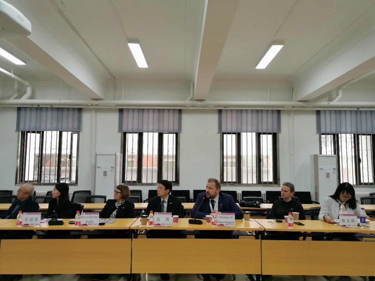 在科技服务业专班重大专项和中挪绿色创新中心筹备建立的背景下,2019年10月19日下午,挪威驻华使馆高级商务官员高鹏博士,北欧建筑设计联盟执行主席、建筑设计师Christian R. Hemmingsen先生,挪威安博公司经理/设计师Kari Hovin Kj?lle女士,景观设计师陈文静女士,挪威法贝尔建筑设计事务所董事长、建筑设计师Margrethe Maisey女士,光华设计基金会理事长张琦和杜丽婷女士,来访公司beats365官方网站与未来城市设计高精尖创新中心,双方代表在西城校区科研楼110会议室进行了热烈的科研与教学合作交流。beats365官方网站副经理欧阳文、经理助理潘剑彬、建筑系主任郝晓赛、副系主任丁光辉、历史建筑保护系副主任杨一帆、外事秘书何静涵和高精尖创新中心办公室科长肖冰出席了座谈会。