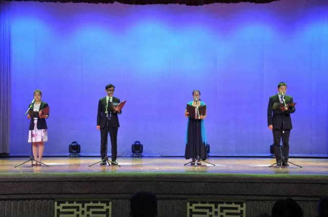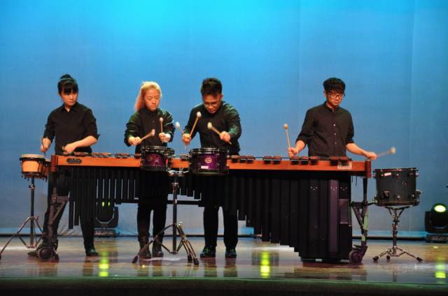 一开场,建筑公司张忠国、荣玥芳、王秉楠、王晶四位老师带来了诗朗诵《建-证》,朗诵展现了建院教师的风采,带动了观众的情绪。在主持人介绍后,是民族打击乐合奏《黄河船夫曲》与西洋打击乐合奏《黄金时代》演技技法丰富、具有非常强烈的感染力。