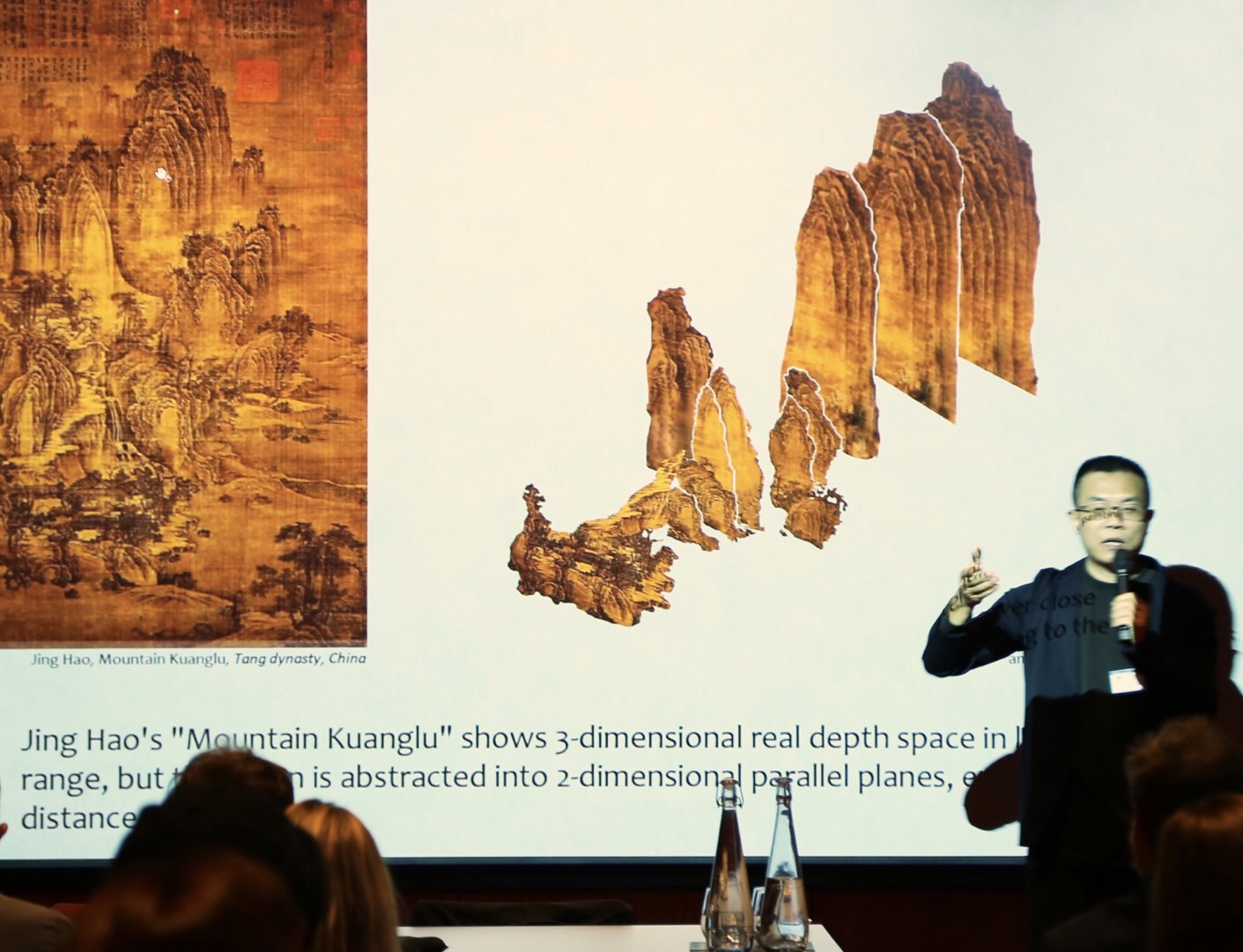 金秋野教授的主题演讲“日常空间之远”(The Remoteness in Everyday Space)从传统文化哲学出发,探讨日常生活和高远之思的关系,认为日常生活中的“近”和“远”,这一对辩证关系并非中国文化中独有,且不仅仅是观念上的。对空间之“远”的追求可以经由建筑手段实现,来表达居住者超脱的内心世界。这可让我们在现象世界,不经由形而上途径,实现对超越性的追求。报告中通过对比传统山水画的视觉技术,与现代建筑经典作品的空间操作一一比较,探讨传统空间语言和审美经验的现代转化途径。