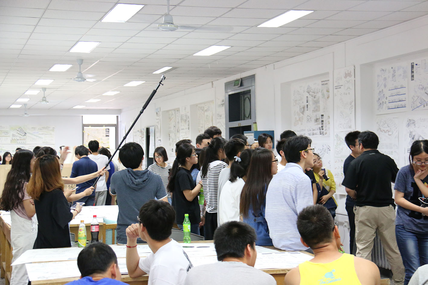 为了更好的记录建院学子的作业成果,提高评图的效率,公司特别组织三位研究生操作航拍飞机、gopro4、Mark111等设备,使用无人航拍技术,全方位立体的展现建院学子的手绘成果、钢笔排线、水彩渲染、喷笔绘图、3D打印等作业效果,师生互动频繁,现场气氛十分热烈。