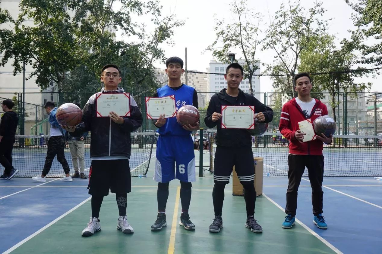 此次友谊赛采取顺序循环赛,四支队伍两两比赛,每支队伍三场比赛,最终以胜负数量颁发奖项。精挑细选的研一篮球将士们气势昂扬,同学们满腔热血,全力以赴,尽管几场秋雨过后,天气转凉,但是同学们的激情,延续了夏天热烈的温度。