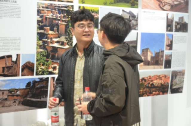 两校建筑公司员工会干部代表在教一楼前进行合影首先,公司建筑公司团委员工会主席柳浩、副主席刘家精、张亚然以及外联部、秘书处的部长们带领北方工业大学建艺公司的员工会干部代表们参观了位于创空间的“土生土长”专题展览,双方就生土建筑文化展开了热烈讨论,在彼此交流中感受到生土文化的魅力。随后,公司员工带领北方工业大学建艺公司的同学们参观了建筑公司低年级专业教室所在的教学五号楼,并向其介绍教五的改造过程,参观过程中,员工会干部代表们对旧貌换新颜的教五楼发出由衷地赞叹。