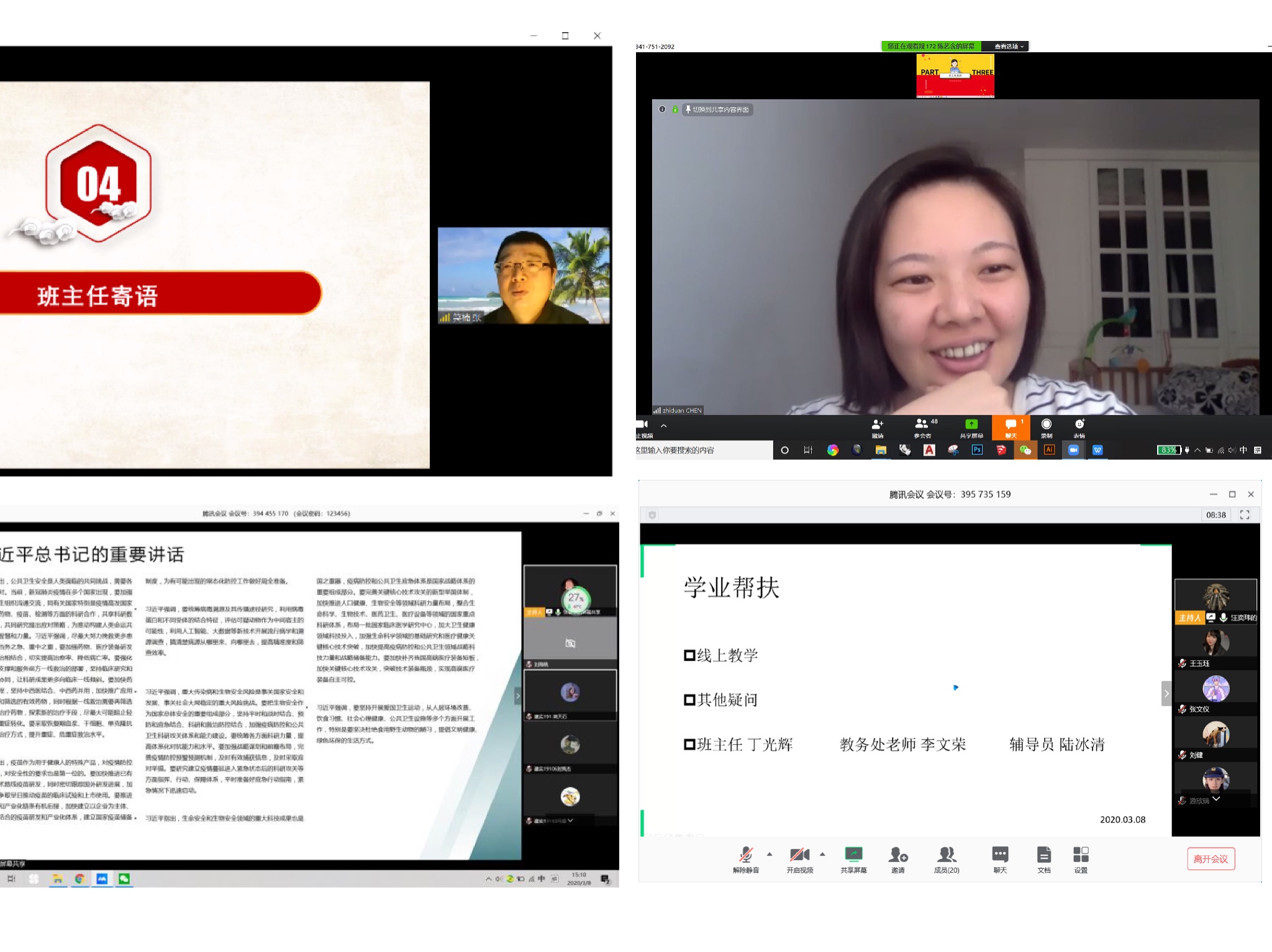 在形式多样的政策宣讲和思想的动员后,班主任老师对当前员工居家学习提出了要求,阐述了在校和在家教学的沟通方式不同的问题,布置了相关任务,并再次重申“不离家、不返校”的相关要求。班级骨干们针对疫情期间上学的方式作出本学期班级学习目标合理安排,传达疫情知识、防护方法和公司通知公告,帮助同学们提高思想认识和责任防护意识,并再次强调认真填报“员工健康情况每日填报系统”的重要性。接下来,大家一起交流最近的学习生活状况,反应一些学习生活中遇到的困难,部分党员在疫情期间作为榜样标杆投身于志愿活动中去,也将自己的体会与班级同学分享,同学各抒己见,相互补充。