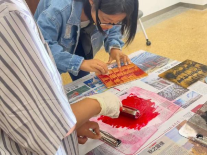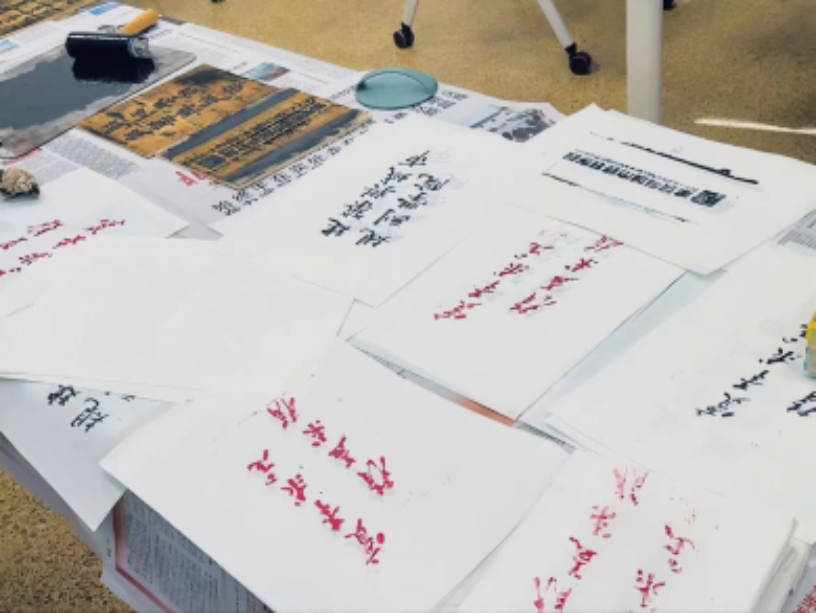 茶话会后,同学们纷纷感受拓印工艺的乐趣,留下自己满意的作品。