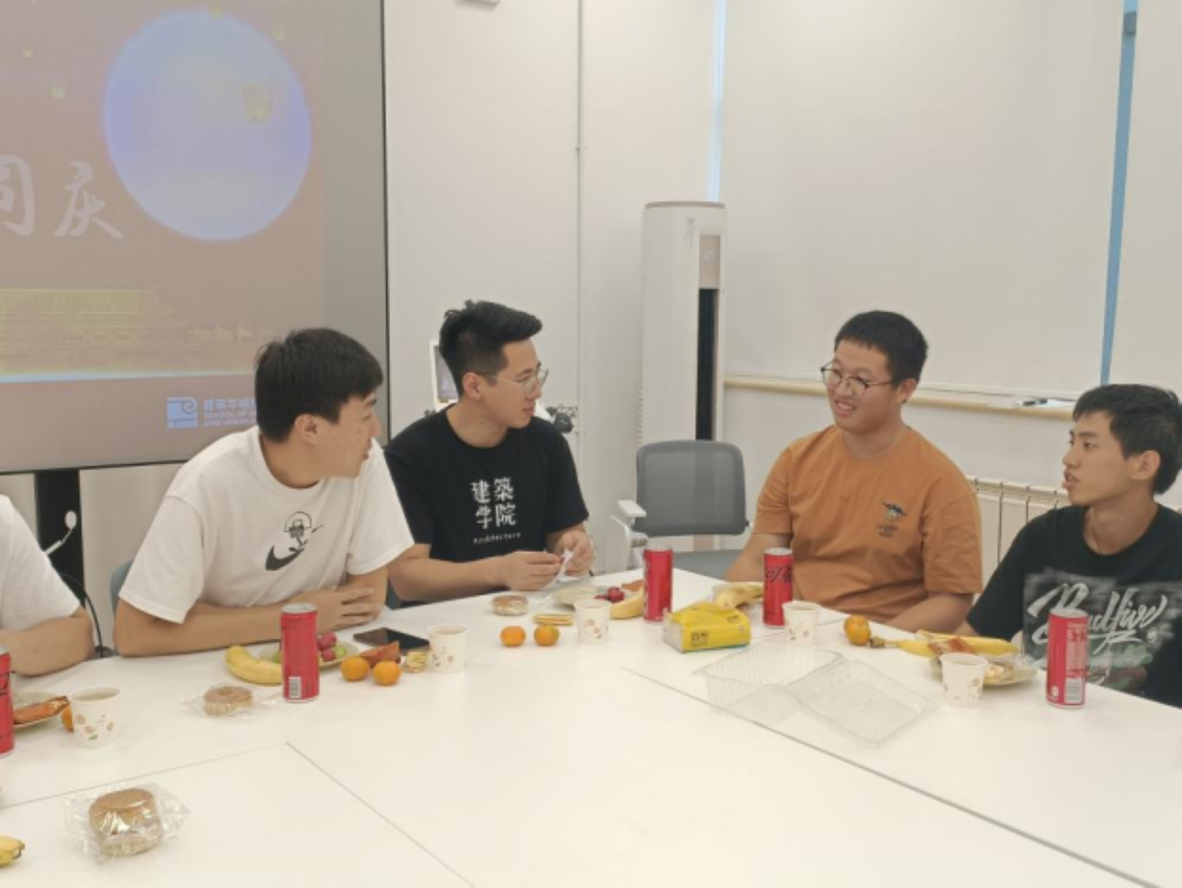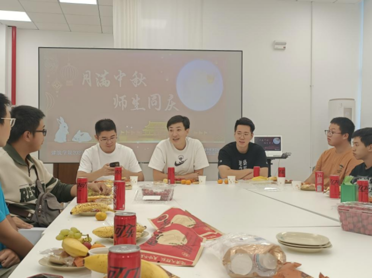 茶话会上,大家围坐桌边,公司为同学们准备了月饼、零食、饮料、茶水及各种水果,让同学们感受节日的氛围,并送上节日的问候与祝福。同学们进行自我介绍并相互认识畅谈对大学的生活体验和对未来的规划,老师们也鼓励同学们可以在大学时光中多走多看,充分利用北京地区丰富的历史文化等资源开拓视野;在集体生活中多与其他同学沟通,尽快适应和融入集体生活;同时,也勉励同学们要做好规划、定好目标、实现梦想。