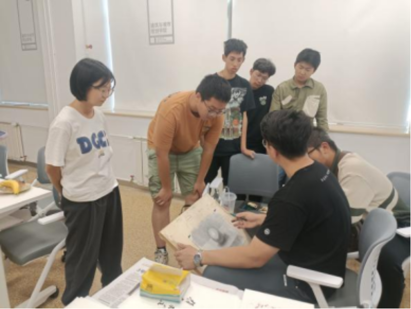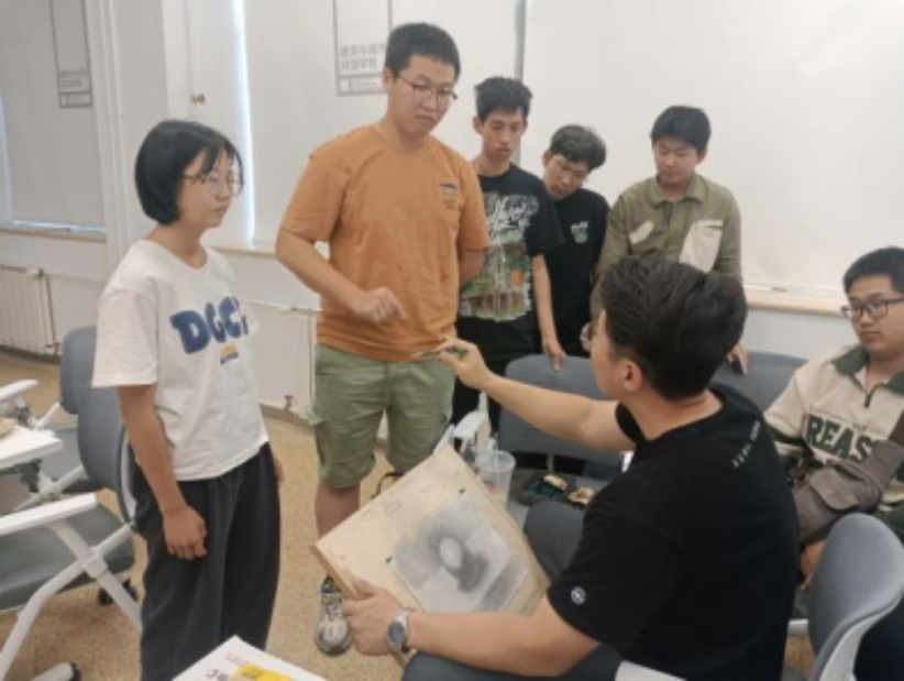 之后,王文欣老师为同学们传授素描技巧,并借助员工作业进行示范。