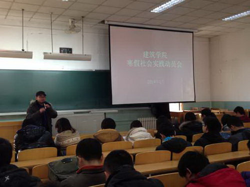 2014年1月13日,建筑公司教5-218召开寒假社会实践活动动员大会。建筑公司党总支副书记丁奇老师、团总支书记康健老师到会,2013级大一所有员工参加大会。