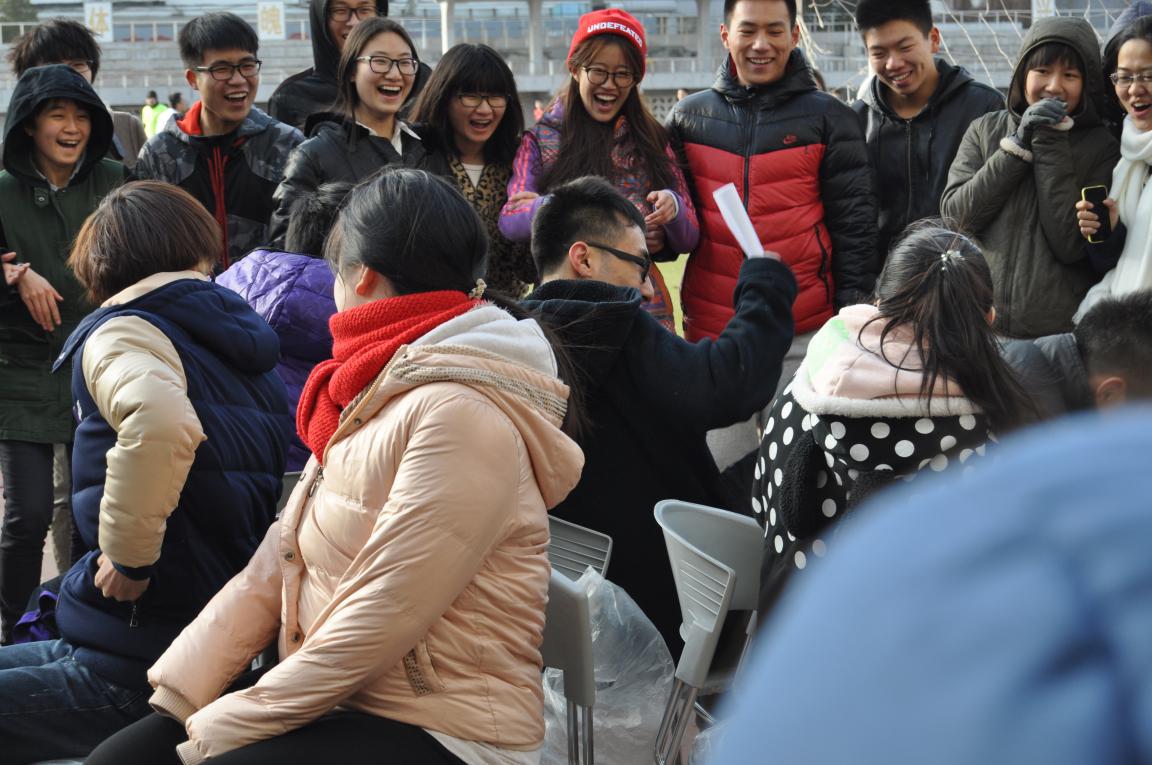 第一个进行的是螃蟹背西瓜,2 名队员背对背手挽手站于起跑线后,共同用背部夹住气球前行,保证气球不掉不爆。在考验大家协作与速度的同时,略显滑稽的动作也趣味性十足,大家笑声连连。随后是需要全体部员参加的跳长绳比赛。大家的技术参差不齐,但仍互相包容,甚至各部之间互相帮助,让这次的趣味运动会更具温情。第三个进行的是抢椅子,主要考验的是各部部长的观察能力、灵活反应与坚决果断。大家包围成圈观战,为部长们加油,一片笑语欢声。踢毽子与套呼啦圈接力都主要体现团队配合能力,但一个更强调耐心,一个则需要速度。最后一项比赛,也是最激情的斗鸡比赛,负责组织比赛的体育部的部员也参加了这个比赛。大家需要在保护自己“鸡王”的同时将别队的“鸡王”挤出边界。靠的是团队的计谋、技巧、力量。大部分队伍都是清一色的男生,让比赛更加激烈有趣,乐翻全场。运动会最后,外联部夺得第一名,办公室第二、生活部第三。排名前三的队伍纷纷领到了自己的奖品。