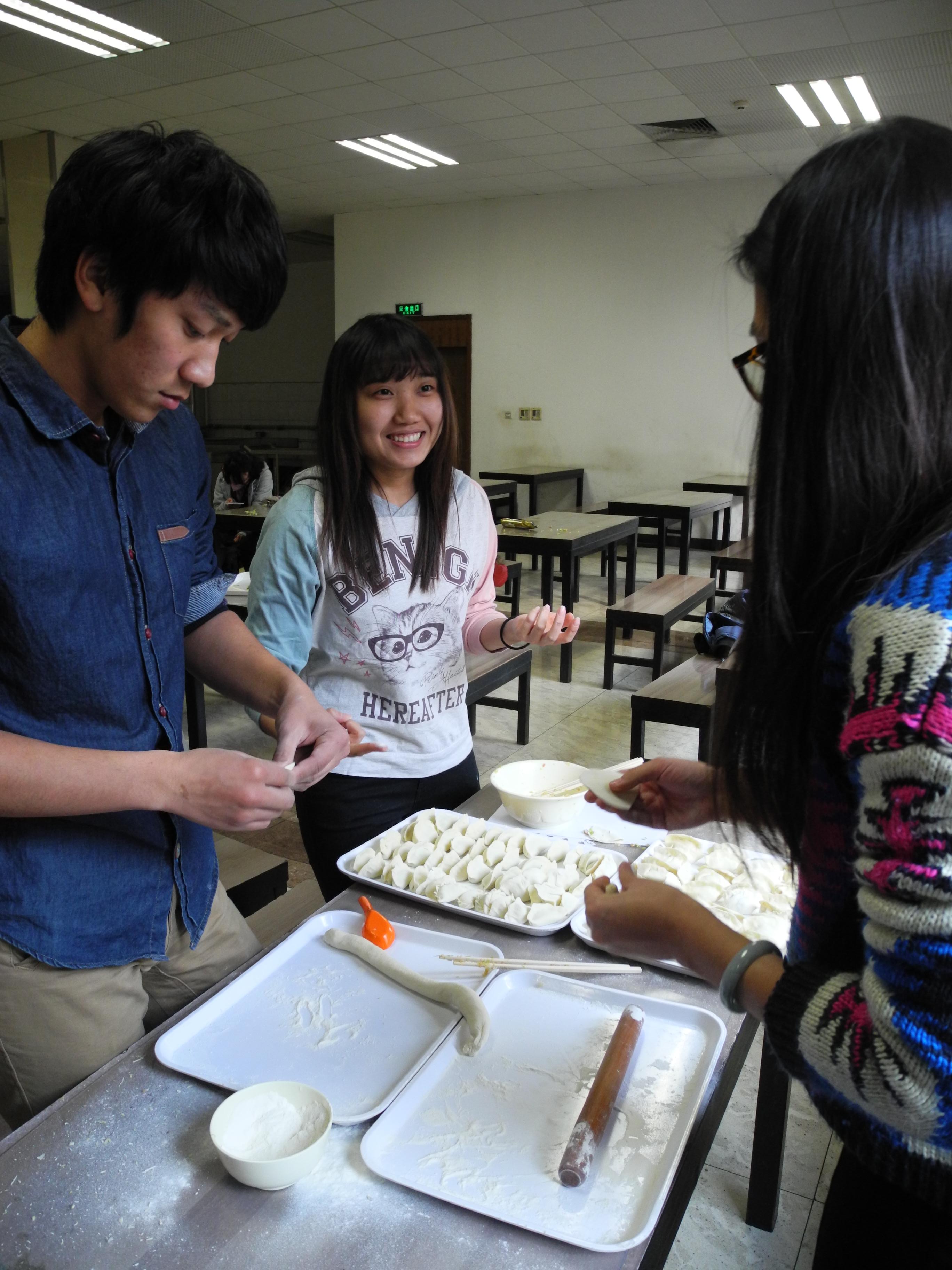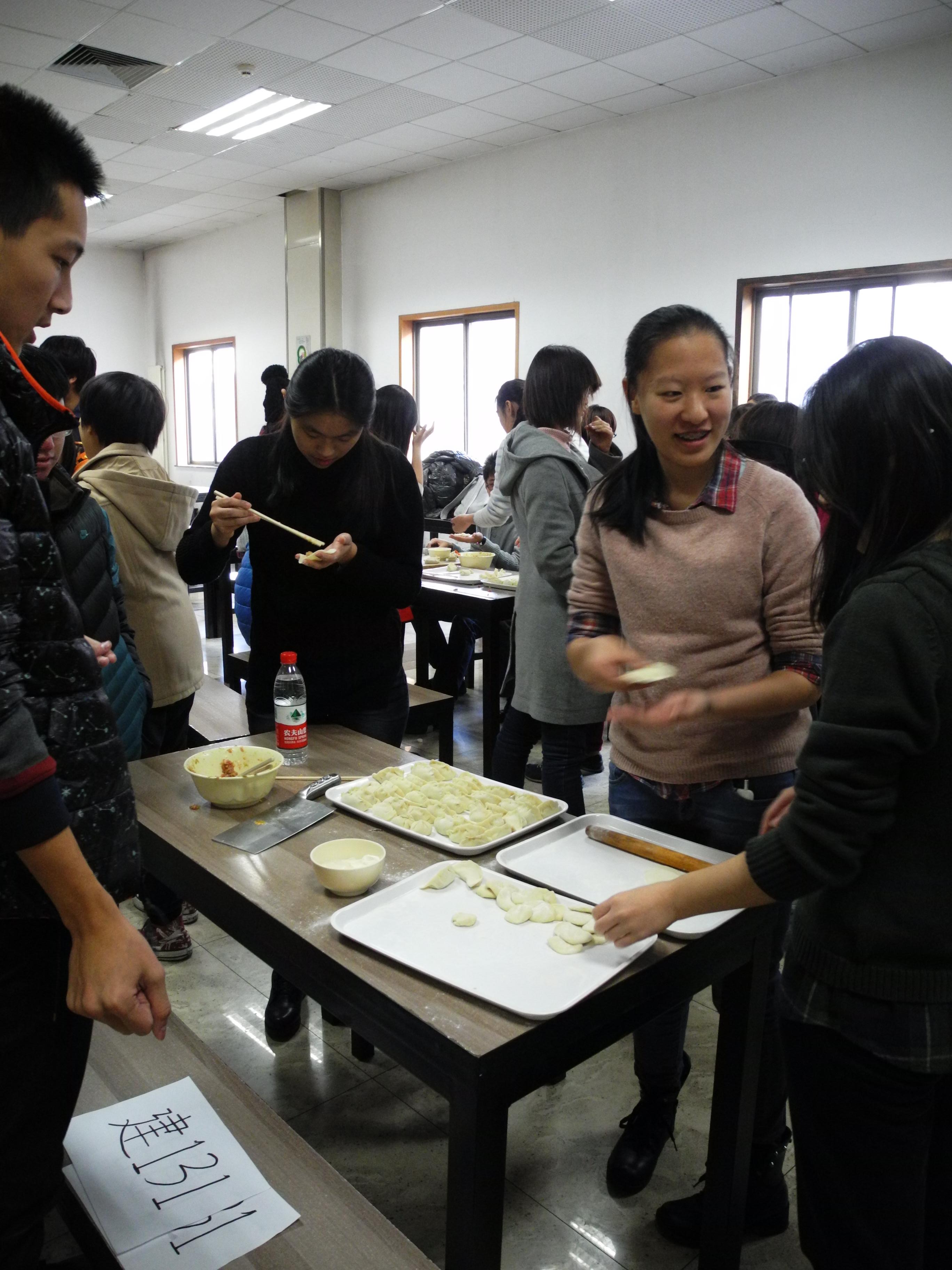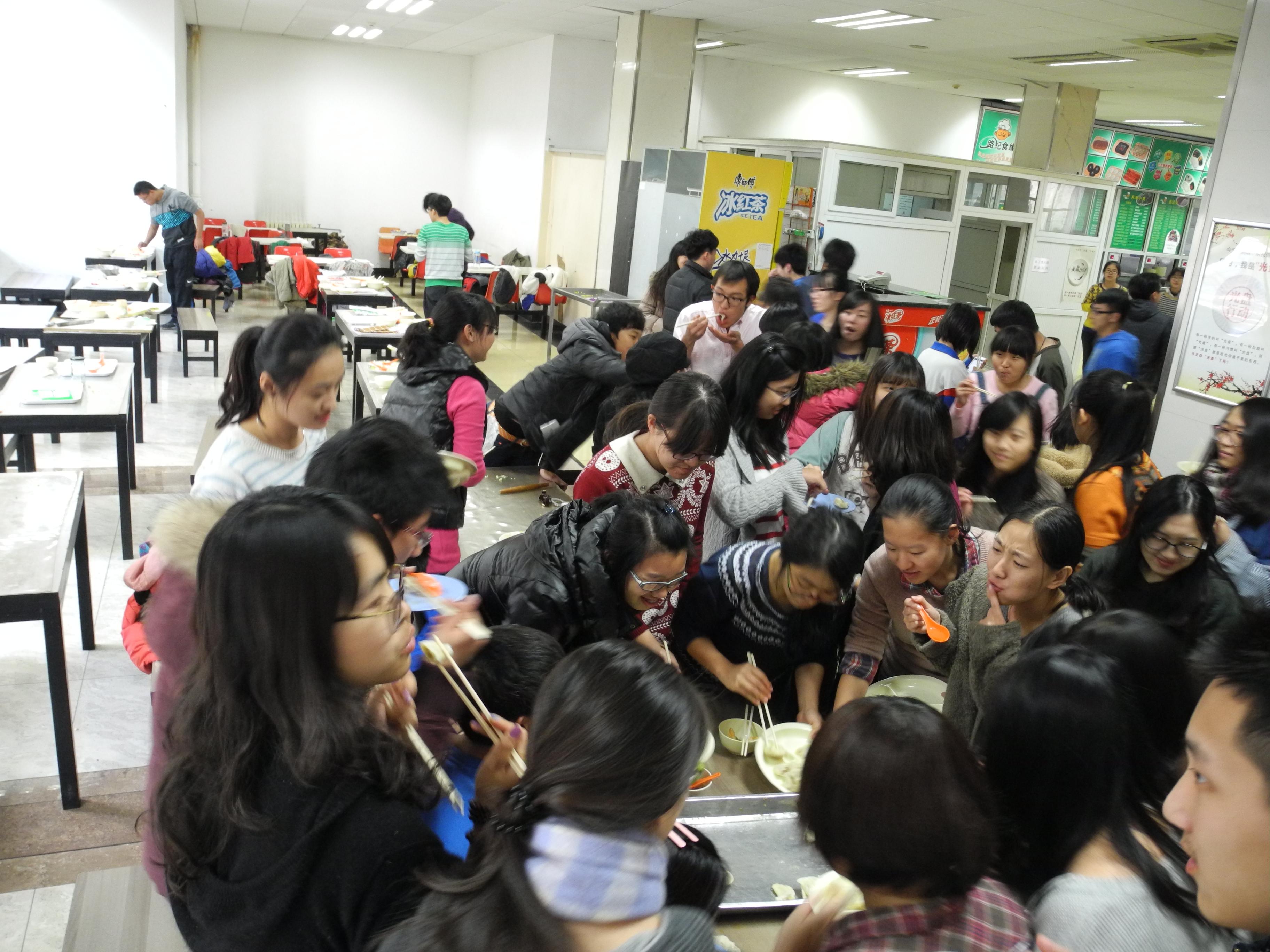 2014年12月18日下午,由公司建筑公司员工会举办的“当饺子遇上冷餐”——建筑公司举办冬至包饺子大赛活动在西城校区食堂二层圆满落下帷幕。参赛的各班选出两名选手后,班与班之间抽签组合成四人参赛小组进行比赛,各组成员需要分工进行擀面,拌馅儿,包饺子,才能以最快速度完成包好最少40个饺子的任务。赛后,由现场选出的十个评委选出自己喜欢的小组的“作品”,受好评最多者获胜。