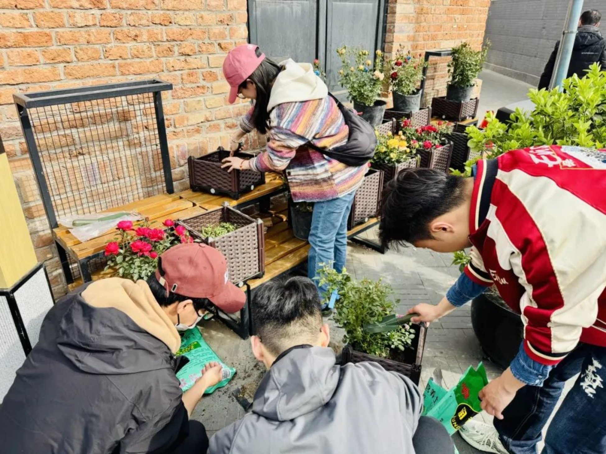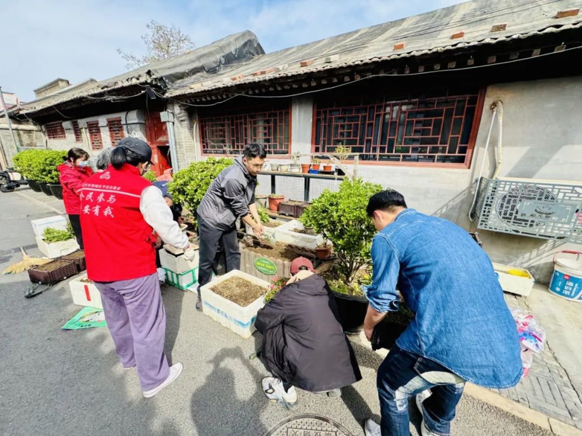 活动当天,留学路社区党委书记王玉华、副书记陆颖,社区服务站站长周建超等十余位社区工作人员,以及来自beats365官方网站建筑公司和北京服装公司艺术设计公司的师生代表、天桥街道责任规划师团队、社区居民等20余人,共同参与本次胡同农园焕新行动,协力打造春日里的胡同绿色空间。