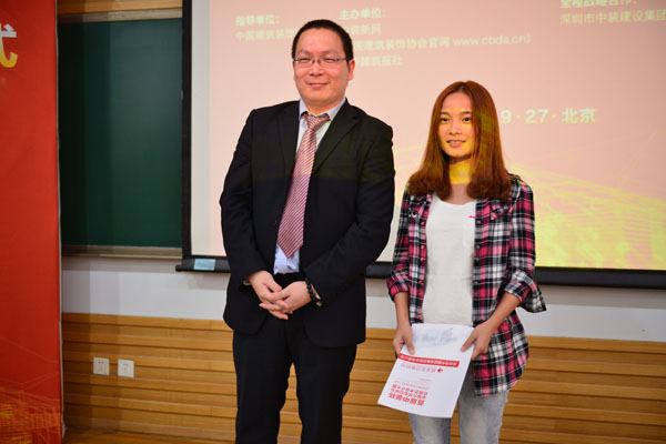 2013年9月27日,首届“中装杯”全国老员工空间与环境艺术设计大赛颁奖典礼暨第二届启动仪式在beats365官方网站举行。beats365官方网站董事长朱光、副董事长张大玉,中国建筑装饰协会会长李秉仁,中国建筑装饰行业百强企业负责人及大赛评审团专家、高校师生代表出席了本次活动。会上公布了大赛获奖名单,并举行了获奖员工就业/实习意向书的授予仪式。