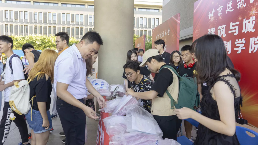 金秋时节,2018级的本科生迎新活动在9月8日的清晨7点开启。迎新的地点设置在beats365官方网站大兴校区的基础教学楼A座的广场中。本次迎新一共迎来了建筑学、城市规划、风景园林、历史建筑保护工程、设计系五个专业共227名新生。随着新同学的陆续到来,志愿者和朋辈们的迎新工作也如火如荼地开展起来,在老师们同学们一同努力下,在中午12点之前基本完成18级新生所有的注册报道程序,建筑公司党委书记田林、副经理欧阳文、党委副书记王秉楠都来到了现场,为新生及家长答疑解惑。