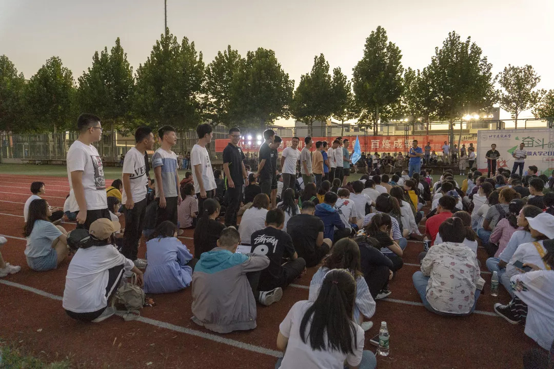 夕阳西下,夜幕渐渐到来,18级的同学们于操场集合进行新生破冰活动。在活动组织者的指导下,18级的各班同学们设计出了属于自己的队旗、队歌和队训并在操场上进行展示。接下来,同学们以小组为单位开始了紧张且愉快的各项破冰活动。在18级同学们出色的表现之下,破冰活动活动顺利完成。夜色之下,18级的新生在各班的照合影照之中拉下了帷幕。