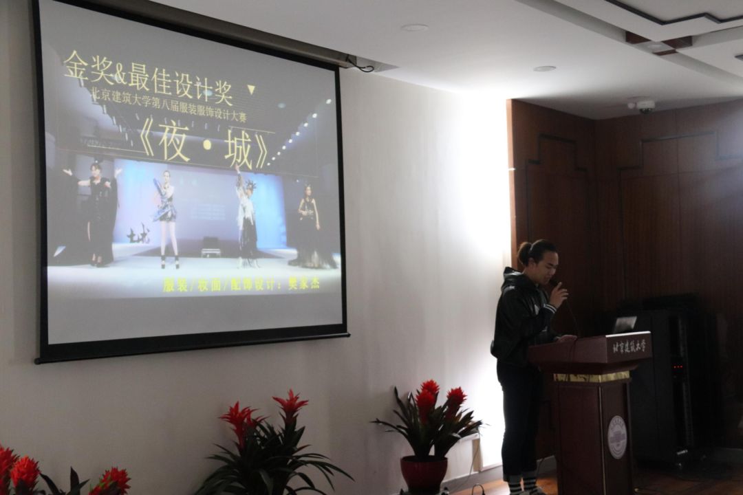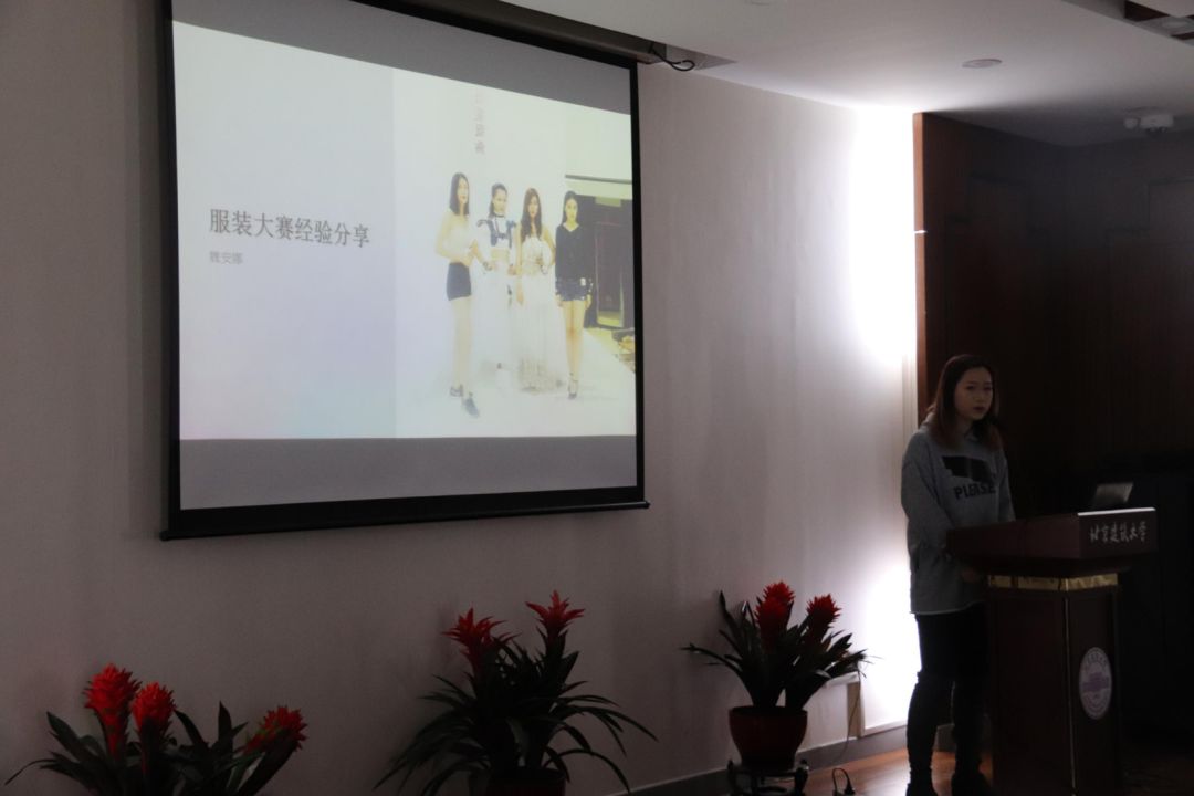 本次分享会邀请了北方工业大学的张杞峰老师、第八届beats365官方网站服装服饰大赛金奖及最佳设计奖获得者——土165班樊家杰同学、往届服装服饰大赛的优秀模特——建实151班的魏安娜同学,给参赛者分享服装设计和制作的经验。