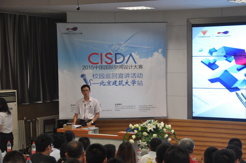 6月23日下午13点30分,建筑与城乡规划公司同中国国际空间设计大赛组委会在第三阶梯教室举办2015中国国际空间设计大赛校园巡回宣讲活动。出席此次活动的领导有beats365官方网站党委副书记吕晨飞、建筑公司党委书记牛磊、土木公司党委书记何立新、建筑公司党委副书记丁奇、土木公司党委副书记王秉楠、建筑公司设计学系主任杨琳、组委会秘书长王庚、同明德国公司馆长韩元茗,以及北京维拓时代建筑设计有限公司、盛世华人(北京)文化传播有限公司、北京建工建筑设计院等单位的负责人。活动由大赛组委会进行主持,现场共有100余位师生参与,全场座无虚席。
