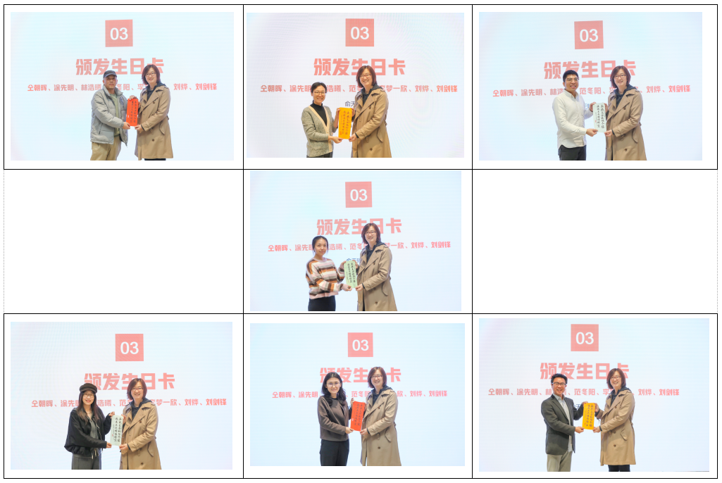 在愉悦的气氛中,寿星们许下了属于自己的美好心愿。建筑系俞天琦教授代表公司为寿星们赠送了精心制作的手工生日贺卡。