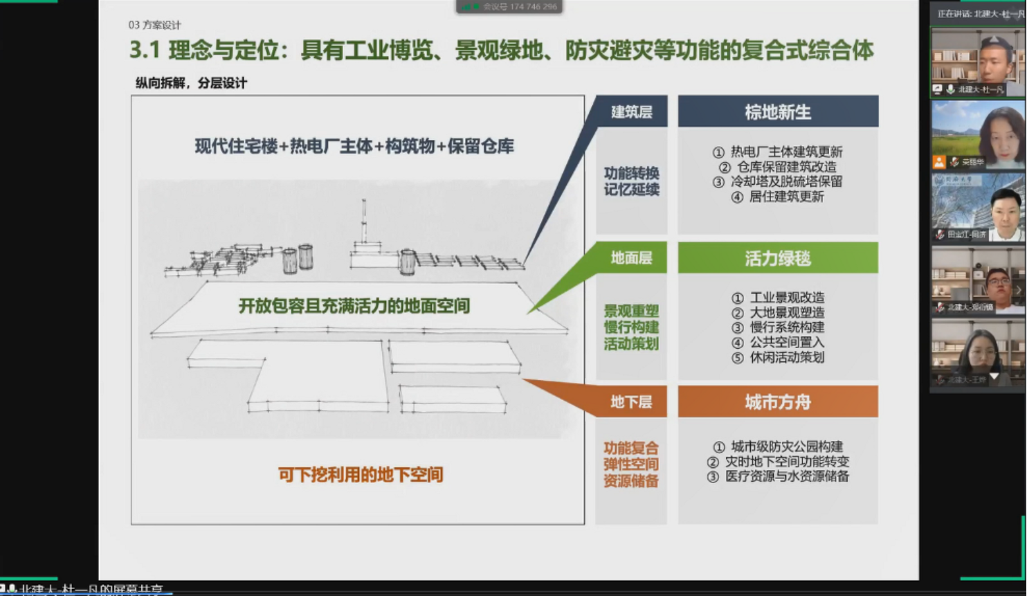 由建筑公司石炀老师指导的郑衍镱、杜一凡、王烨、张钰曈、耿卓艺、李晨明等6名2015级城乡规划专业本科生参加了此次联合毕业设计。同学们通过深入研究和探讨了场地的现状条件,在重点问题方面达成共识,并逐渐演化成同一主题下的两套不同方案。