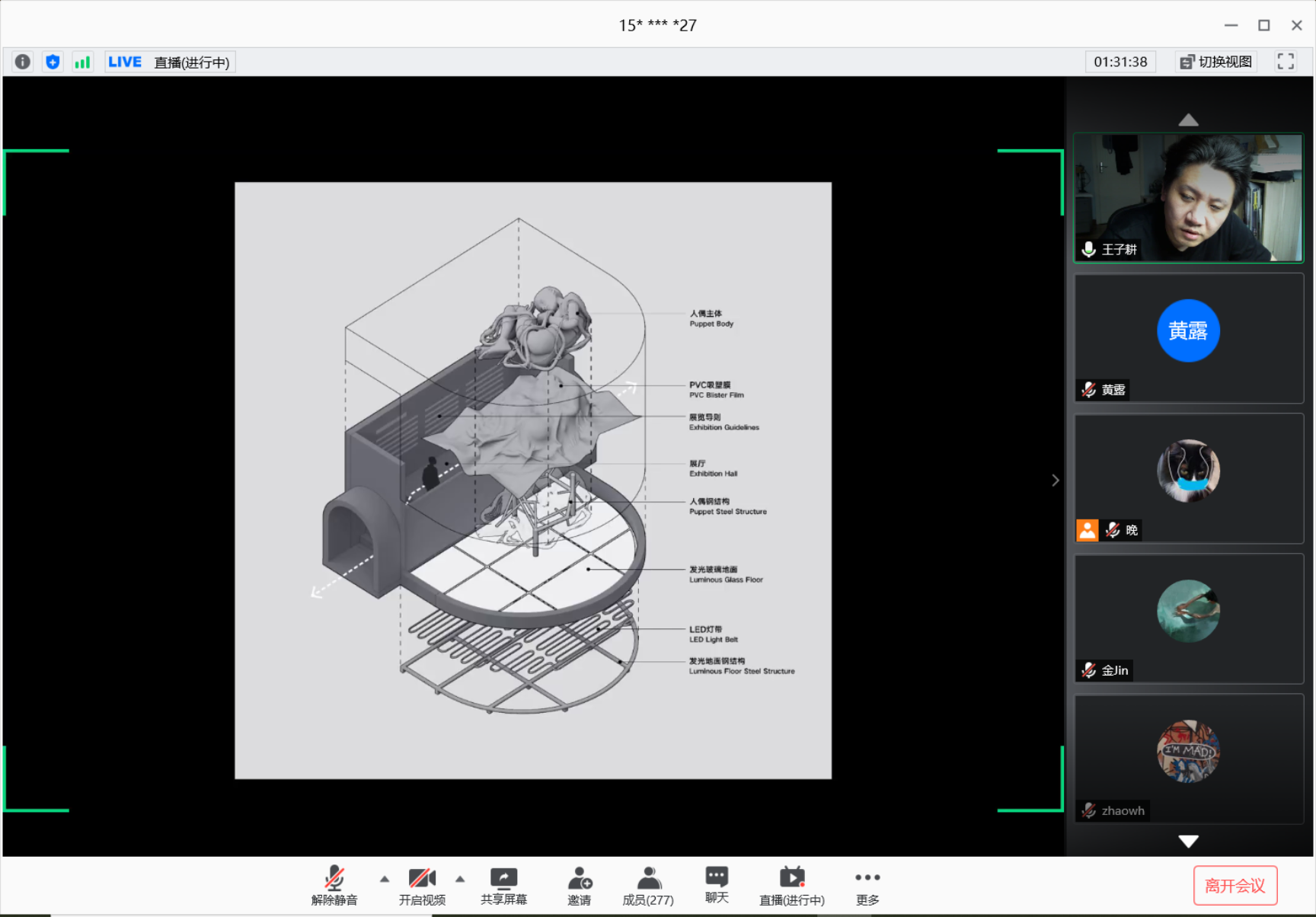 王子耕首先在“思辨”部分向线上听众分享其学习期间的若干设计作品,随后在“叙事”部分详细讲解在工作与教学期间的若干跨界实践作品,讲述对电影、环境、人文、哲学、社会和建筑等多层面的思考与探索。嘉宾讨论环节,鲁安东教授提出,讲座中所讨论的思辨是一种更高级的智力活动,而叙事在本质上是该活动行动力的构成部分,进而对年轻建筑师提出“回到对现实理解的行动”的建议。金秋野教授谈到,主讲人把一种带有批评性的意见演变成空间实践,以建筑师的身份用空间进行文化叙事,可以比拟为“厨师出身的美食家”。自由提问阶段,同学们踊跃发言,提出关于中国建筑叙事特点、设计跨界、建筑话语权等问题,王老师及参会嘉宾共同探讨解答。