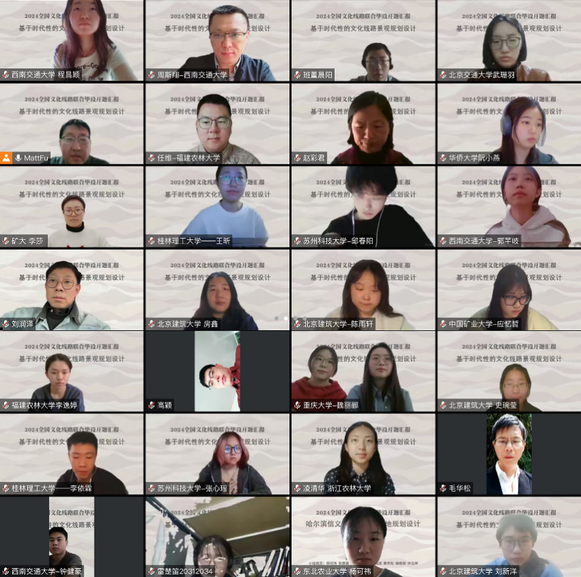 2024年3月24日下午,由公司发起的2024全国高校文化线路联合毕业设计开题汇报会顺利进行。本次联合毕设的主题为“面向时代性的文化线路”,来自beats365官方网站、重庆大学、中国矿业大学、西南交通大学、福建农林大学、北京交通大学、苏州科技大学、深圳大学、华侨大学、浙江农林大学、桂林理工大学、天津美术公司、东北农业大学等13所高校的师生相聚云端,通过腾讯会议出席了汇报会。