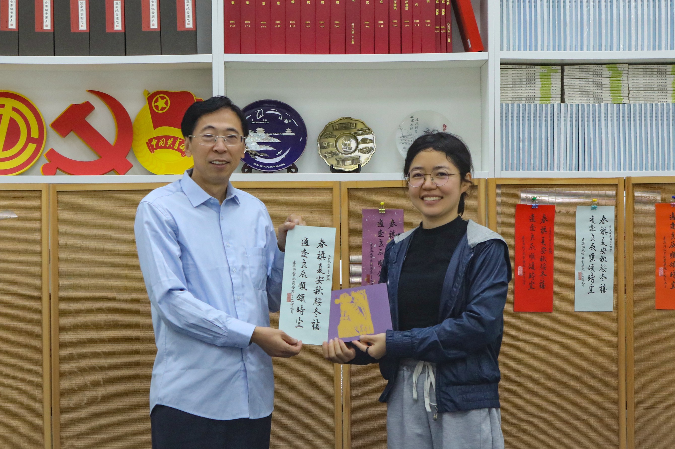 本次生日会的主题“体态健康”——改善教职工在工作生活中的体态问题。首先,王文欣老师为各位寿星们献上真挚的祝福,伴随着欢声笑语和动听的生日歌,寿星们都许下了美好的愿望。同时设计学系赵希岗教授代表公司向福星们转送了手工生日贺卡。