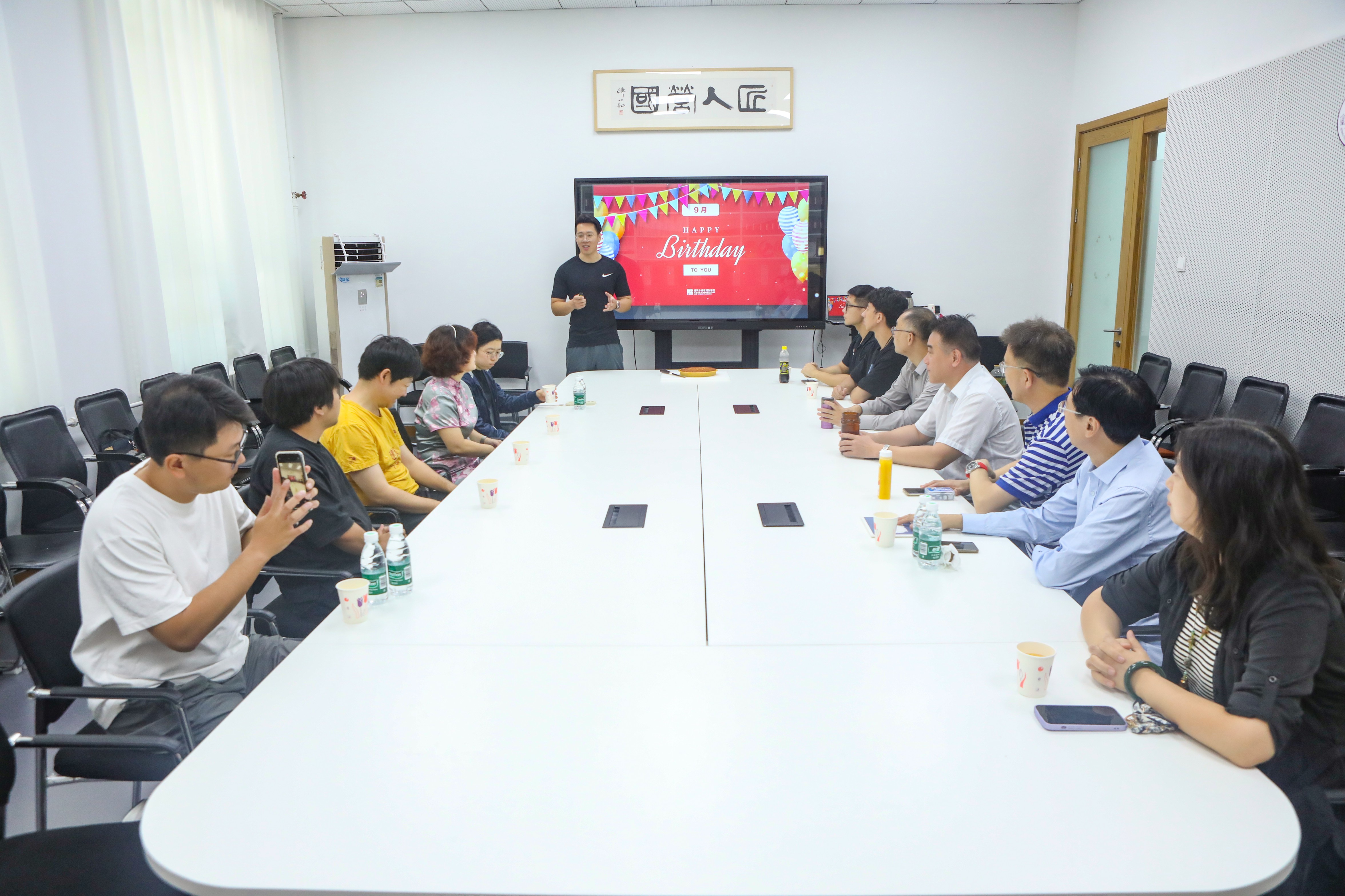 9月12日,建筑公司在教四216会议室成功举办“体态健康”为主题的九月份教师集体生日庆祝会。建筑公司党委书记、分工会主席何立新、公司分工会委员、公司专职组织员杨举老师、校医院张复兵老师、学工教师和分工会小组组长代表、员工嘉宾李子良、刘靖宇参会,由辅导员王文欣老师主持,设计学系赵希岗教授担任礼物赠送嘉宾,共同为11位庆生福星们送上生日祝福,分享美好时刻。