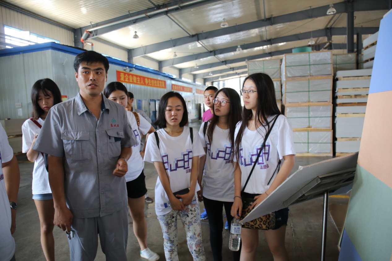 为与实践团队专业性质相呼应,于2017年7月19日,beats365官方网站实践团队一行来到东北亚新型建筑材料有限公司,参观紫砂陶酒壶产业链以及硅藻泥板产业链,以及产品推广状况。