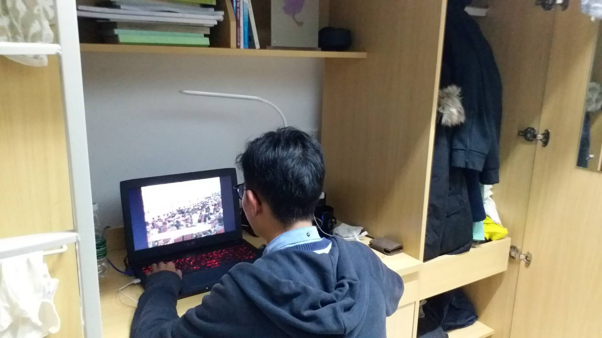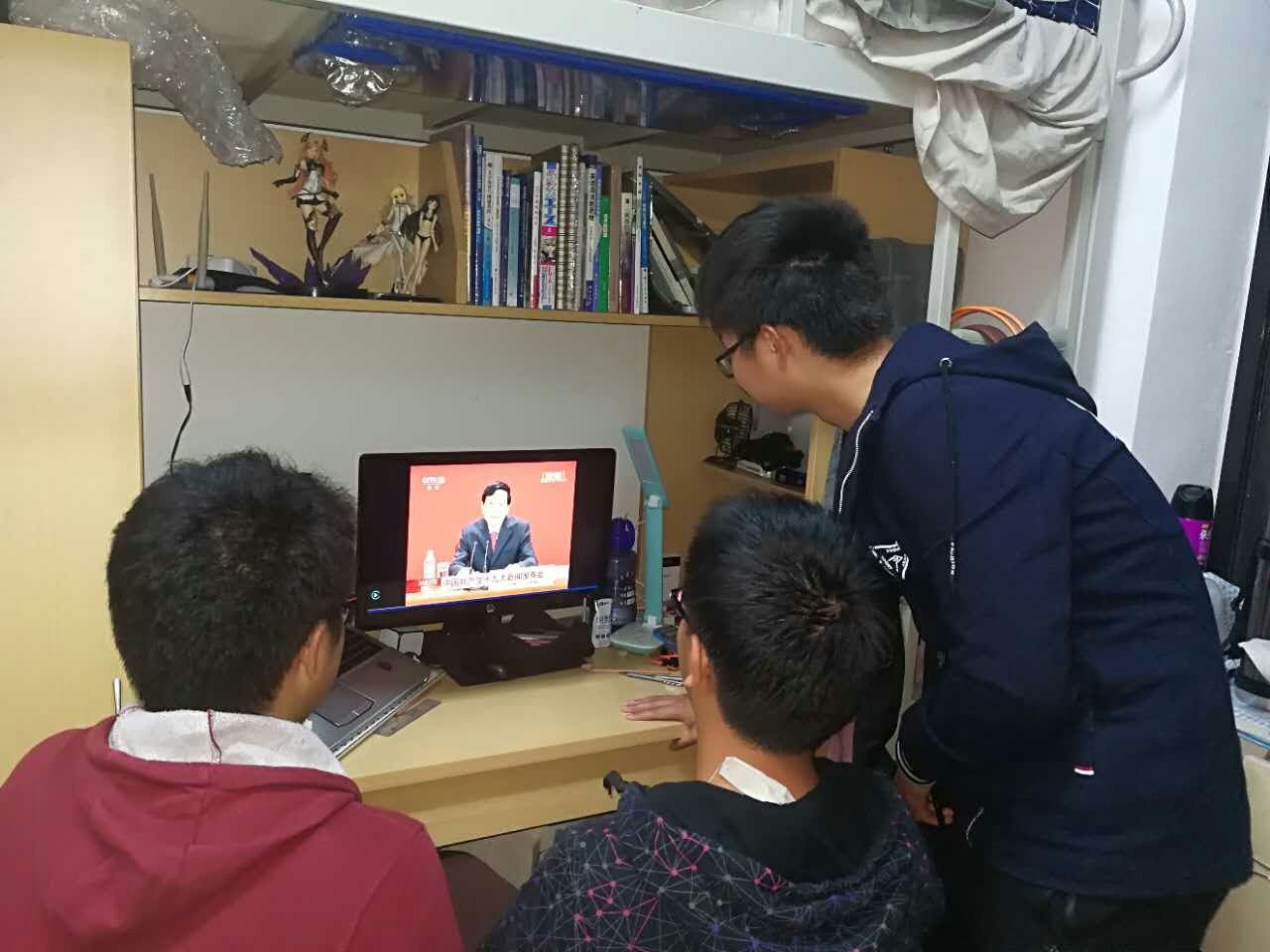 同学身在寝室,也积极观看十九大直播,聚焦国事,学习习近平主席提出的新时代中国特色社会主义思想。同学们认真收看十九大开幕,聆听领导讲话,学习党的政策方针,与肩负的历史使命,为积极入党,明确党员责任,提升自己的觉悟思想。