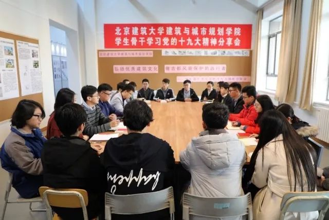 12月8日下午,在党委宣传部的指导下,建筑公司在西城校区举办员工骨干学习党的十九大精神分享会。建筑公司员工骨干30余人结合党的十九大报告中有关“坚定文化自信”和“建设美丽中国”的重要论述,以“弘扬优秀建筑文化,做古都风貌保护的践行者”为主题展开学习交流,建筑公司青年理论导师丁光辉参加分享并现场点评。
