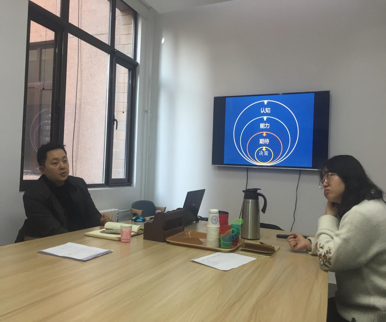 交流过程中,对于难于理解的部分,王老师进行了耐心讲解:整个逻辑过程充满了不断的反复和更新,期待会随着能力的变化而适当调整,决策也是如此,并且有些时候是期待指导认知的能动性,从而引导能力的塑造。