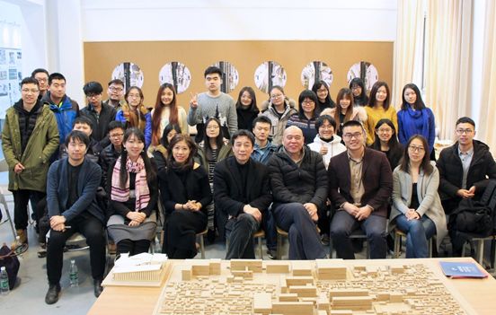 师生与评图嘉宾庄惟敏教授、史夏瑶等合影