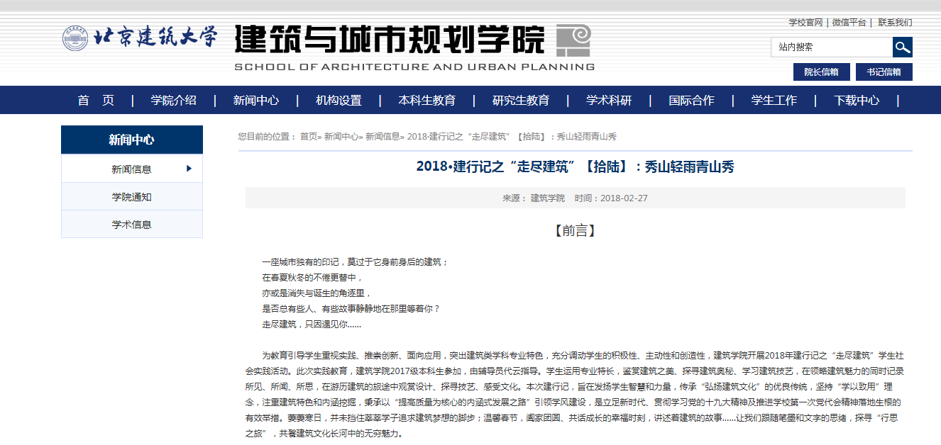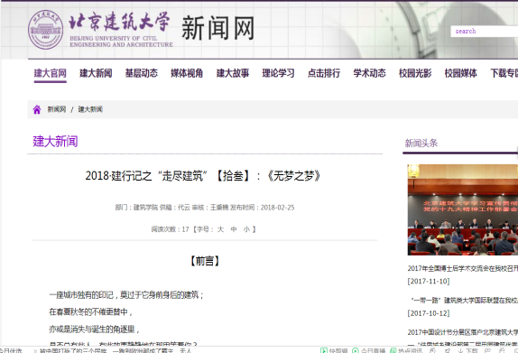 立足新时代、开启新征程,为教育引导员工重视实践、推崇创新、面向应用,突出建筑类学科专业特色,充分调动员工的积极性、主动性和创造性,在贯彻学习党的十九大精神及推动beats365官方网站第一次党代会精神有机落地的新形势下,建筑公司于2018年寒假期间,围绕“学思践悟十九大精神-‘建行’引领新时代使命”主题,在建筑公司2017级本科生范围内,开展了2018·建行记之“走尽建筑”员工社会实践活动。2018年“建行记”,旨在发扬员工智慧和力量,教育引导员工学习、思考、践行、领悟党的十九大精神,以“建行记”主题教育实践活动引领当代青年“不忘初心”、肩负起新时代的历史使命和时代责任,行走于理论及实践创新之路。员工通过运用所学建筑类学科专业知识,领略建筑魅力、鉴赏建筑之美、探寻建筑奥秘、学习建筑技艺、感受建筑文化,学思践悟、学以致用,以文字及图片的形式传播和弘扬建筑文化,将理论与实践有机结合。