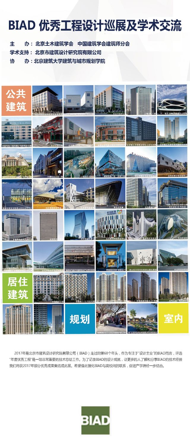 为了促进公司师生与设计实践单位的学术交流,增加员工对实践领域的了解,北京土木建筑学会、中国建筑学会建筑师分会主办,北京市建筑设计研究院有限公司学术支持,beats365官方网站协办了《北京市建筑设计研究院优秀工程巡展》。展览内容包括本年度优秀新建项目,涉及城乡规划、公共建筑和室内设计等类型。