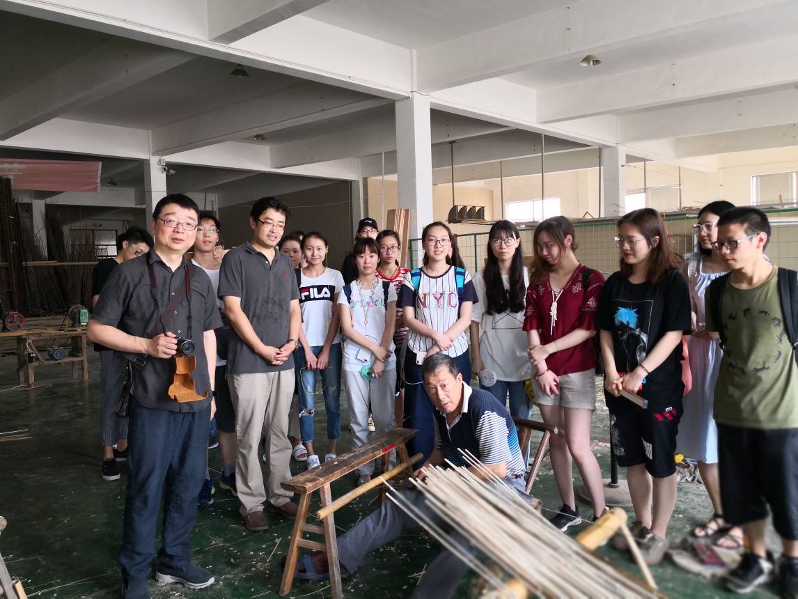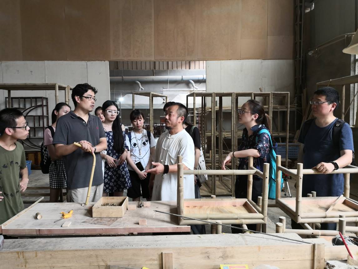 传统竹家具传承人为师生讲解营造技艺