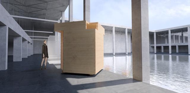“小屋”是介于装置与建筑之间的暧昧存在,它既像一个扩大的家具,同时又像是一个拥有建筑特征的房子,这个特征和中国传统四合院建筑中的床是一样的。