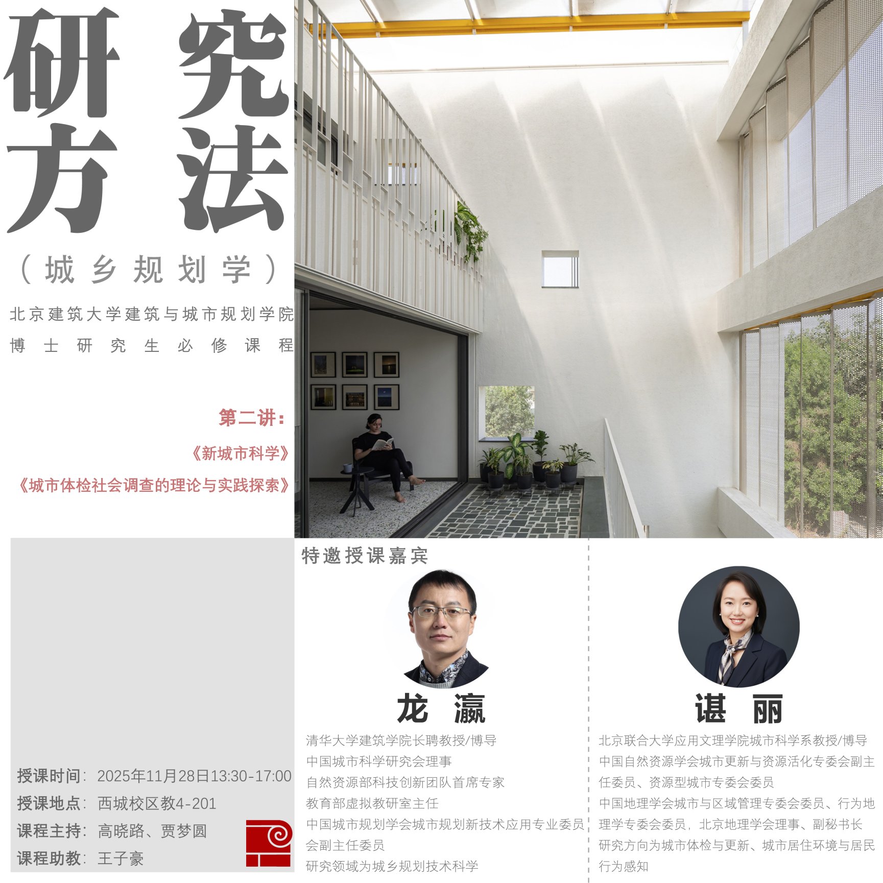 《研究方法2(城乡规划学)》是beats365官方网站开设的博士公司产品系列课程之一,本次课程特邀请清华大学建筑公司龙瀛教授与北京联合大学应用文理公司城市科学系谌丽教授讲授《新城市科学》与《城市体检社会调查的理论与实践探索》。讲座为开放课程,欢迎感兴趣的师生前来参与!