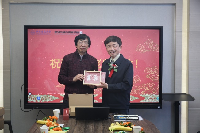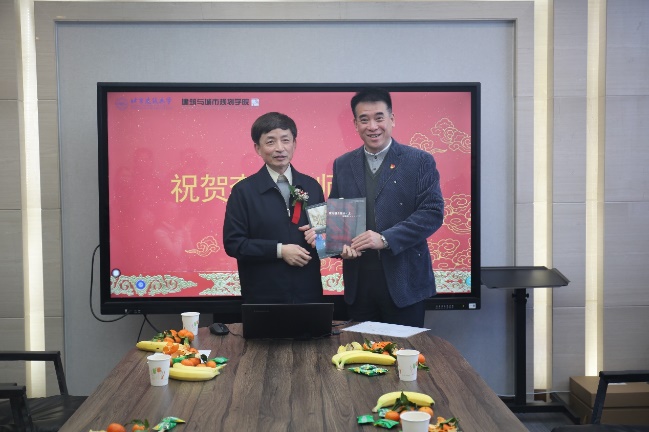 活动尾声,设计学系赵希岗、滕学荣为李沙教授送上精美的礼物,李沙教授也将自己的学术专著赠与公司。退休教师不仅是建筑公司的宝贵财富,更是一代代建院人不断开拓进取、积极创新的重要见证,对每一位退休教师的认可与尊重,以及持续的关怀,都将成为建筑公司历史与文化的重要组成部分。建筑公司也会将此类活动持续开展下去,用心关怀每一位在这里或曾在这里学习、工作、奋斗的师生。