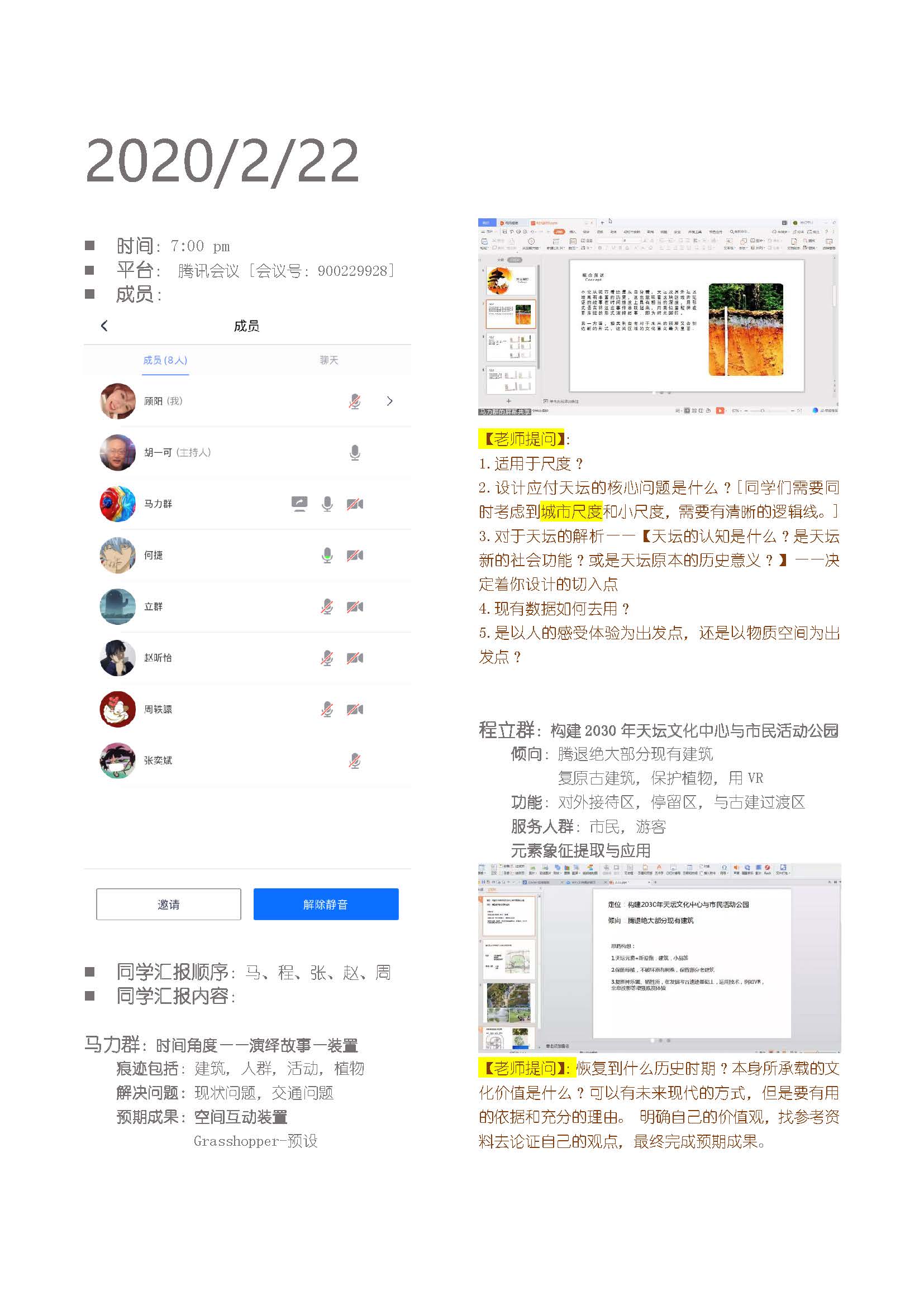 1、小组成员(共16人)汇报概念性方案; 2、指导教师针对问题提出修改建议; |