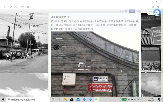 如何破解这个难题呢?陈老师想到了将研究生教学中的文献研究环节引入本科教学,在本科教学中增加文献研究的分量,鼓励同学们从影像资料、网络咨询(博客)、书籍、硕博论文、期刊文献等入手,尽可能收集与设计场地“东四地区”有关的资讯,弥补现场踏勘缺失的教学不足。同时借助文献研究提升对同学收集资料、分析整理资料和总结归纳资料等分析归纳能力的培养,提高同学们在设计过程中的思辨能力和研究能力。