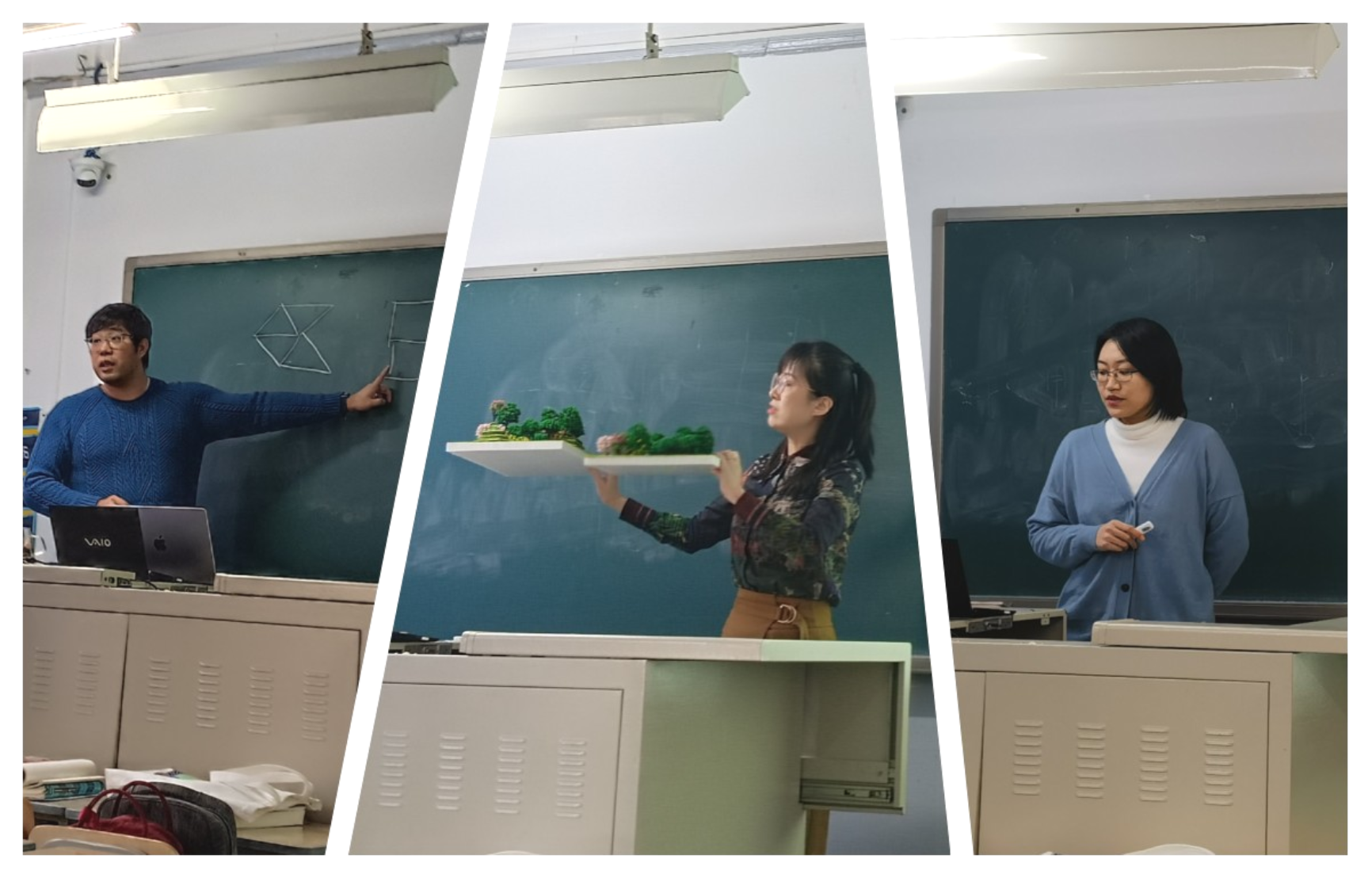 建筑系贾园、建筑技术部徐跃家、风景园林系李露三位教师依次登场,按照公司比赛要求,每人进行15分钟的课堂讲述。每名评委对参赛教师逐一进行点评,针对讲授的内容、语言组织形式、汇报ppt排版等具体细节提出了自己的详细建议。