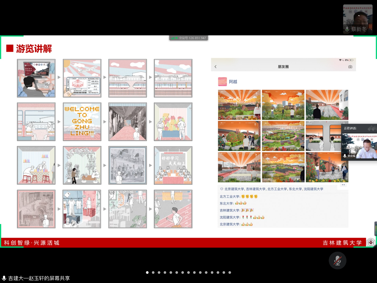 6月5日,2020年城乡规划专业渤海湾院校联合毕业设计进入到了最后的阶段——终期汇报。由吉林建筑大学赵宏宇老师主持,参加会议师生40余人,以小组为单位,在线汇报毕业设计的完成情况,展示设计成果。