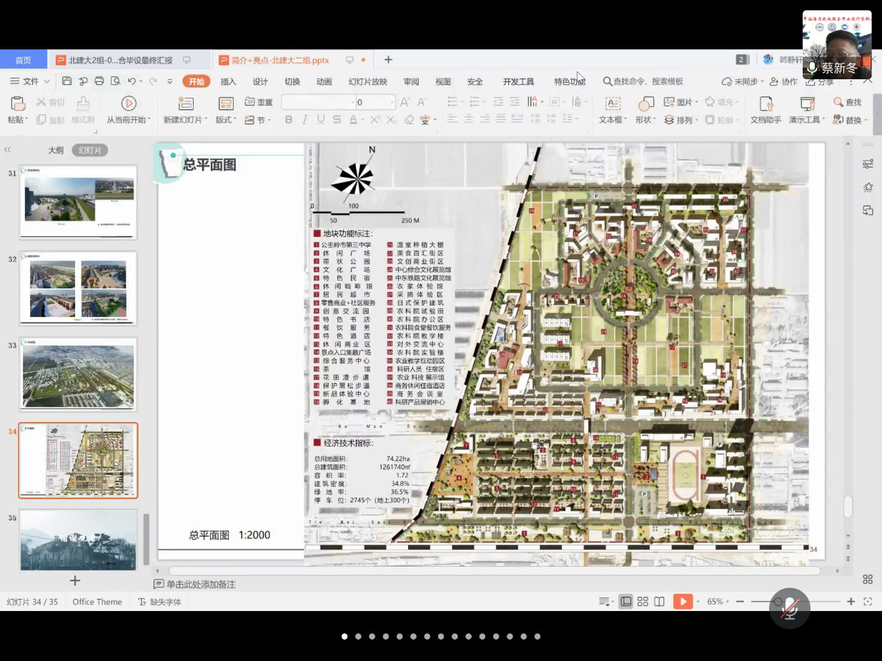 下午12:30起,终期汇报拉开序幕,首先介绍了来到此次会议的各位领导。之后以公司为单位,按照沈阳建筑大学3组,吉林建筑大学3组,beats365官方网站2组,东北大学2组的顺序先后汇报。每组汇报15分钟,教师点评与组别间交流10分钟。由于前一天每个小组的汇报录屏文件与演示文件都已上传,故当天每组仅用3分钟进行小组人员和小组方案成果的简单介绍,其余时间由老师及员工进行点评。每个小组的汇报都十分精彩,也各具特色。老师们和同学们在对各组成果表示认可的同时,也提出了针对性的改进意见。在3月11日的调研汇报和4月15日的中期汇报中,老师们分别提出了“聚焦地块,敞开心扉”和“突出特色,优化逻辑”下一阶段要求,同学们在终期汇报中也很好地完成了老师们的期待和要求。
