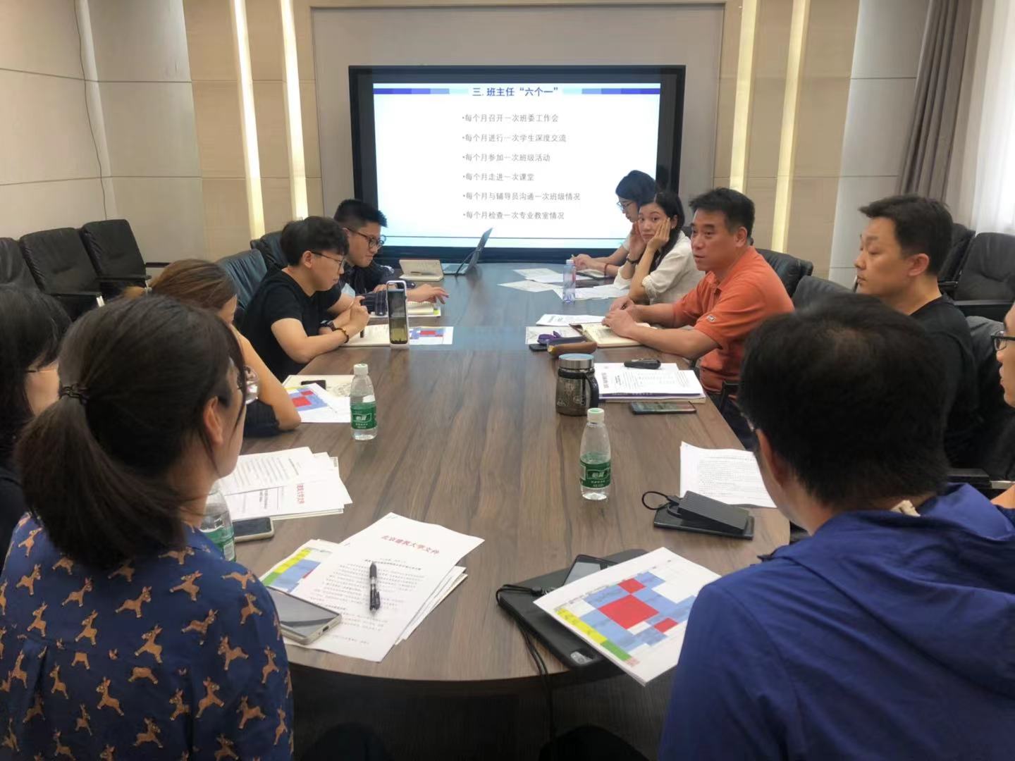 首先,王秉楠副书记对本科生班主任的岗位职责、聘任管理、“一个月、六个一”工作方案等进行了详实的介绍。随后,何立新书记做了总结讲话,他强调班主任要在新生入校时做好员工专业学习的启蒙、引导员工树立正确的价值观、提醒员工养成良好的学习生活习惯、培育员工优秀的人格。做好新生的引路人,成就员工成长成才。
