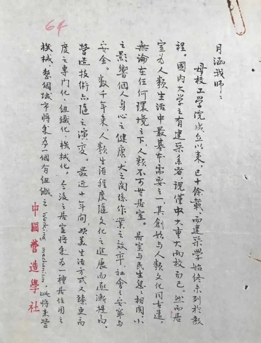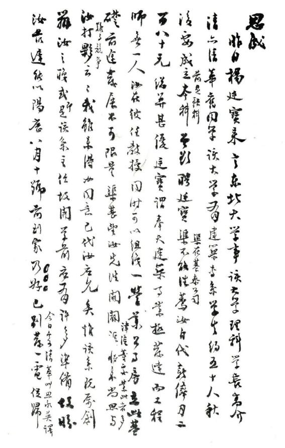 1945年3月9日梁思成致清华大学董事长梅贻琦信手稿,信中建议创办清华大学建筑系。