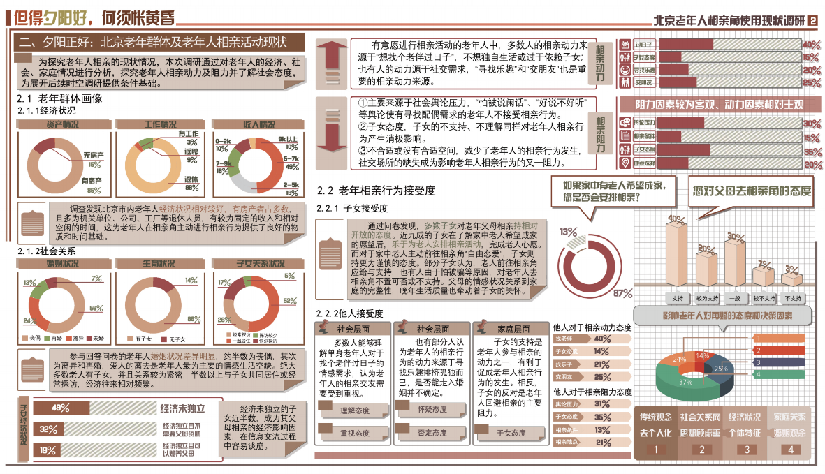 三等奖:本科生吴兆庆、吴泽阳、刘娅迪、杨镇泽提交的调研报告《但得夕阳好,何须怅黄昏——北京老年人相亲角使用现状调研》(指导老师:张颖异)