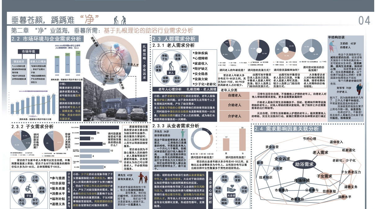 三等奖:本科生车宛容、张静远、张津瑞提交的调研报告《垂暮苍颜,踽踽难“净”——“社区—居家养老”背景下老人助浴服务运营与满意度调研》(指导老师:刘剑锋、顾月明、王婷)
