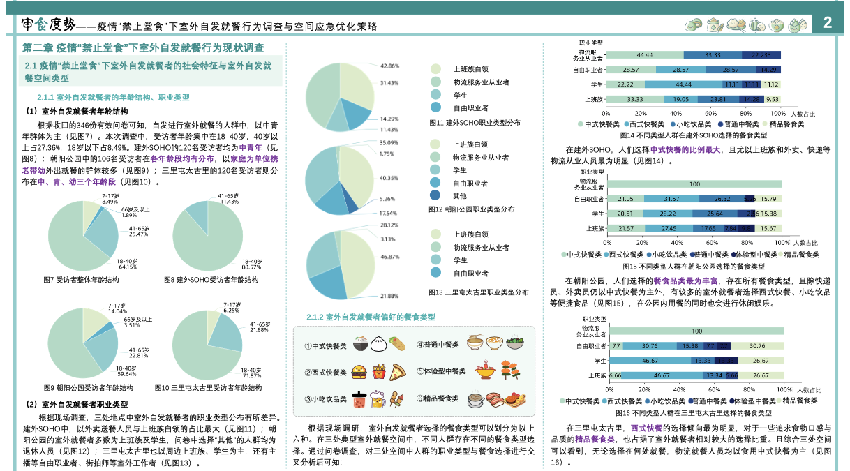 三等奖:研究生王鹭、叶隽怡、马超华、赵萌提交的调研报告《审食度势——疫情“禁止堂食”下室外自发就餐行为调查与空间应急优化策略》(指导老师:吕小勇)