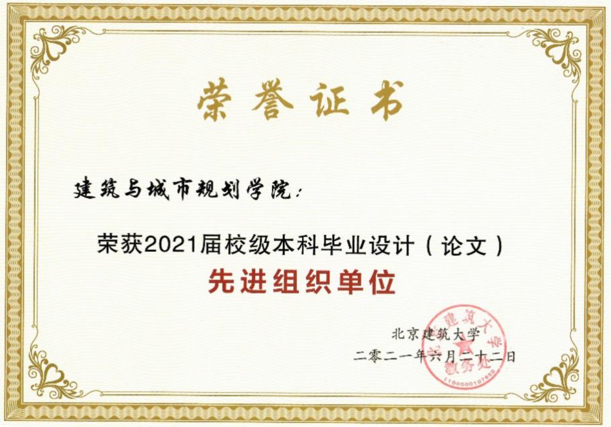 经过建筑公司全体毕业设计指导教师、公司教学管理办公室老师们的共同努力,尤其建筑公司通过举办了毕业设计作业展,邀请崔愷院士、庄惟敏院士以及京内其他6所高校建筑公司或园林公司的经理或副经理参加了针对毕业设计课程改革的教学研讨会,题目为“城市存量更新背景下的高校建筑类专业人才培养研讨会”,为公司建筑公司的建筑类专业的本科教学改革提供了支撑与指导。因此,本学期建筑公司荣获公司2021届校级本科毕业设计先进组织单位。